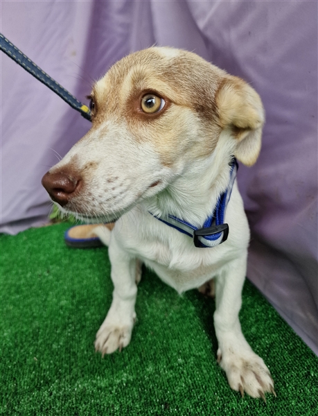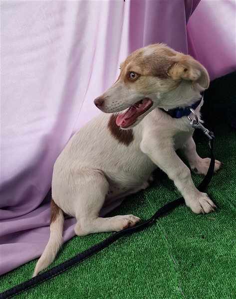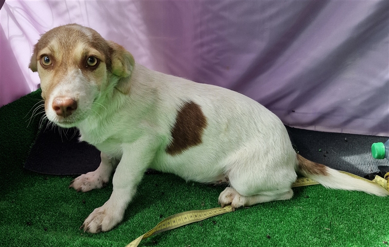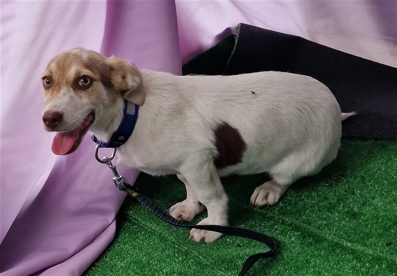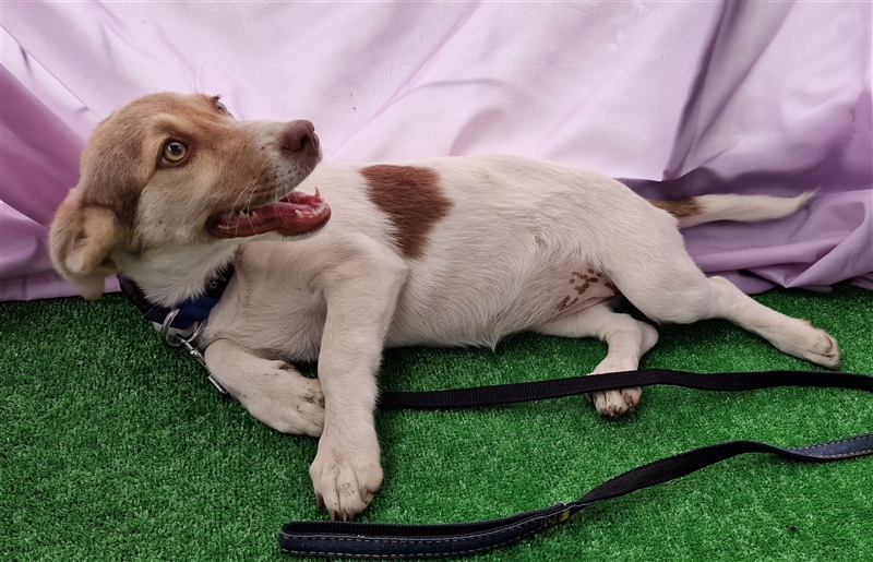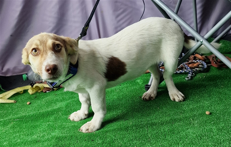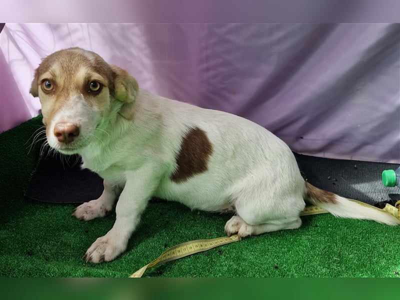 Katy, Mischlings-Mädchen, geboren am 23.04.2024, hat derzeit eine Schulterhöhe von ca. 25-30 cm und wiegt momentan etwa 5-6 kg. Wir denken, Katy wird ca mittelgroß werden.