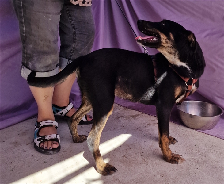 Melvin, Mischlings-Junge, geboren am 04.01.2024, hat derzeit eine Schulterhöhe von ca. 40-45 cm und wiegt ca. 10 kg. Wir schätzen, Melvin wird nicht mehr viel wachsen.