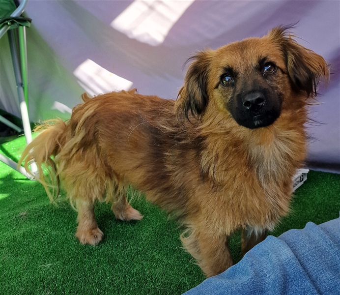 Nemo, Mischlingsrüde, geboren am 10.01.2022, hat eine Schulterhöhe von ca. 30 cm und wiegt derzeit etwa 7-8 kg. Nemo ist zwar klein, möchte aber trotzdem wie ein normaler Hund behandelt und respektiert werden.