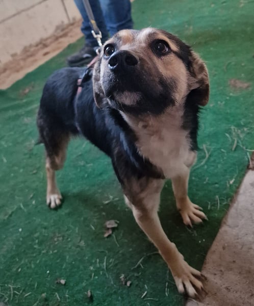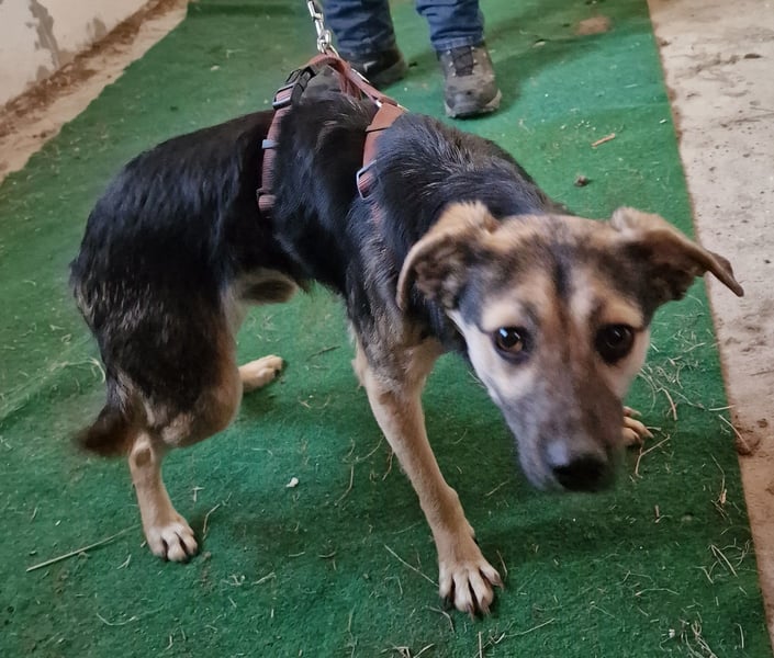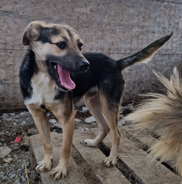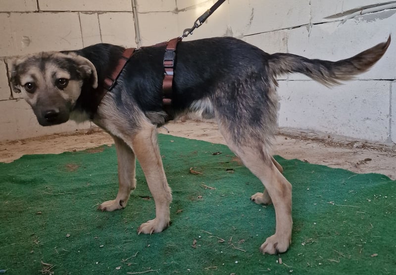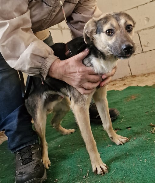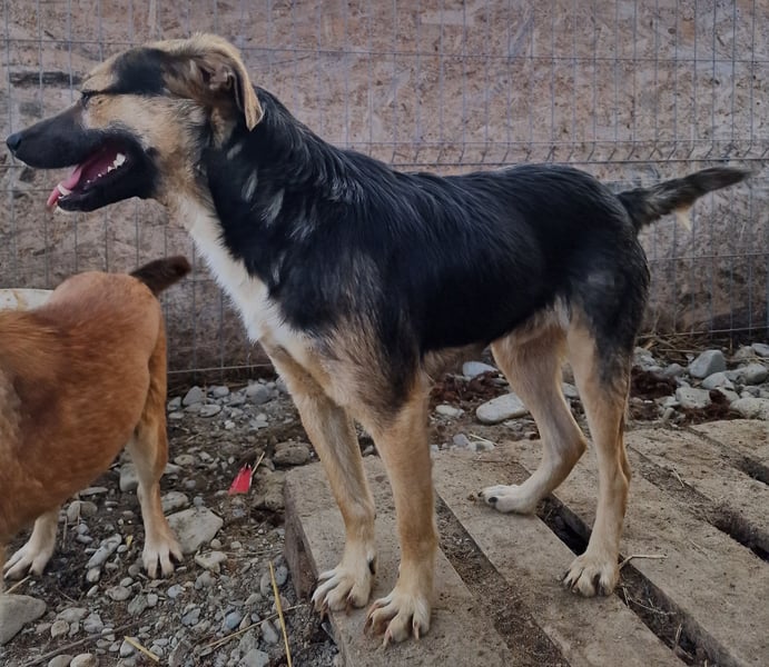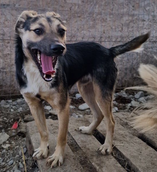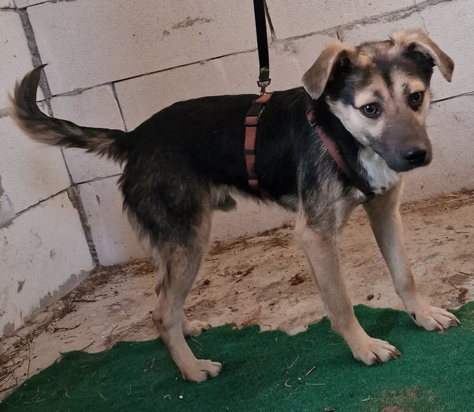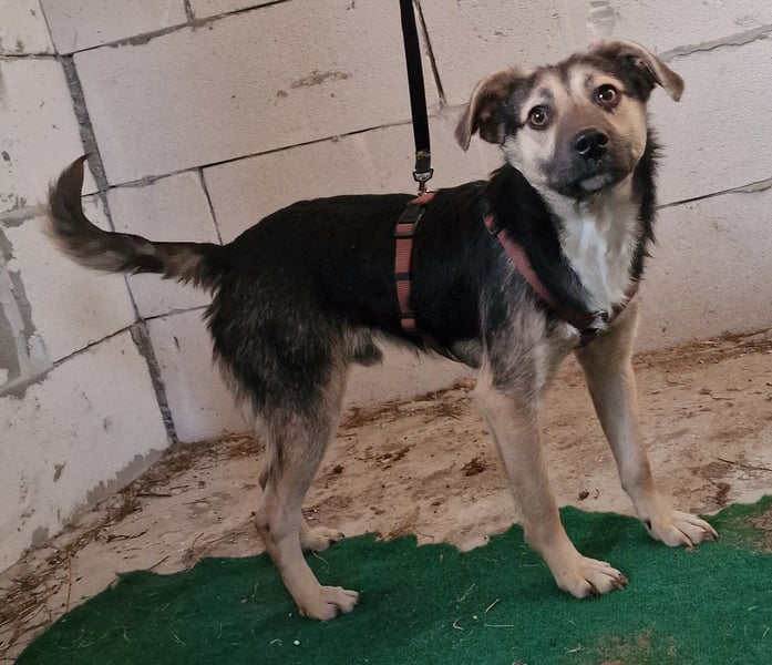 Caius Mischlings-Junge, geboren am 15.12.2022, hat eine Schulterhöhe von ca. 40 cm und wiegt etwa 12 kg.