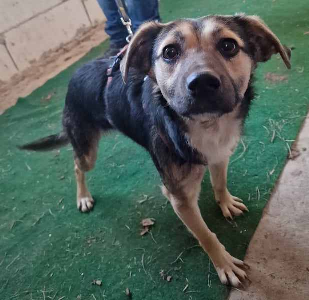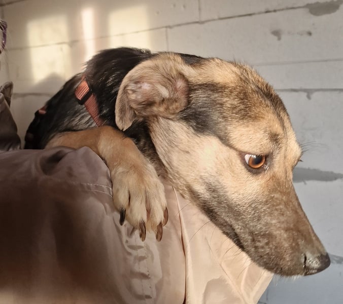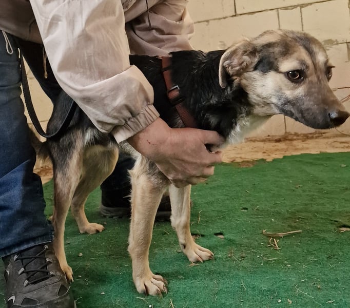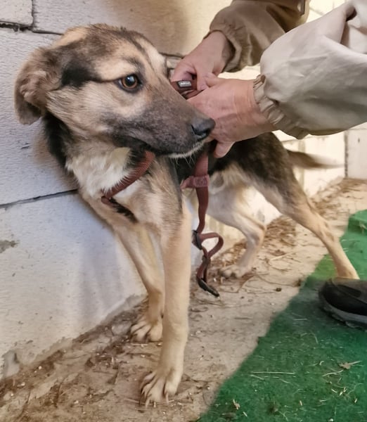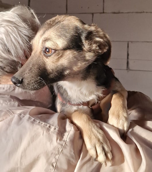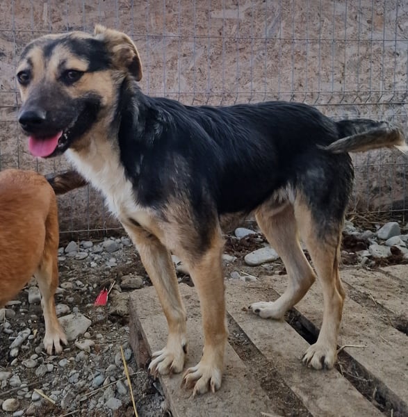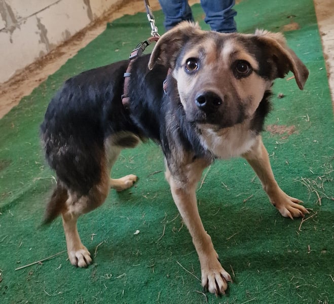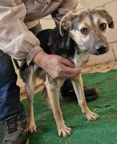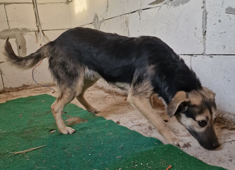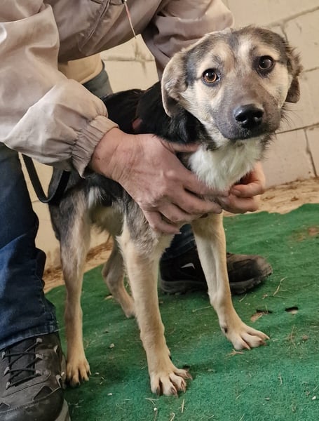 Caius Mischlings-Junge, geboren am 15.12.2022, hat eine Schulterhöhe von ca. 40 cm und wiegt etwa 12 kg.