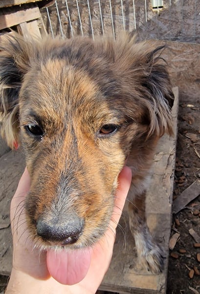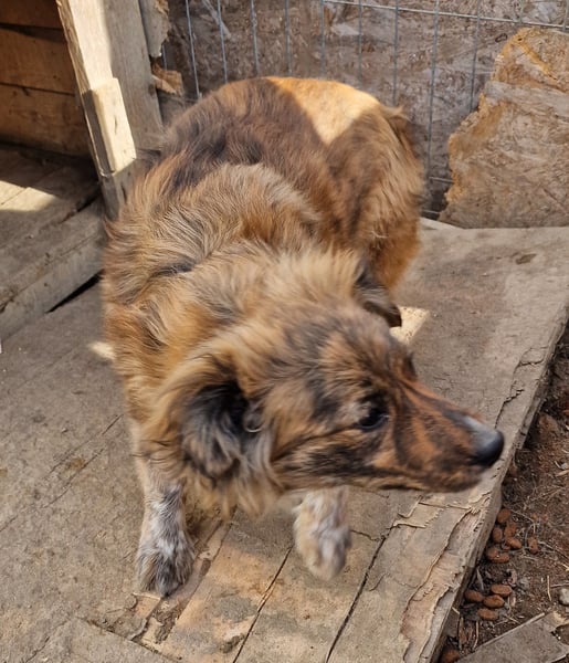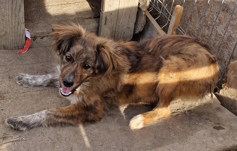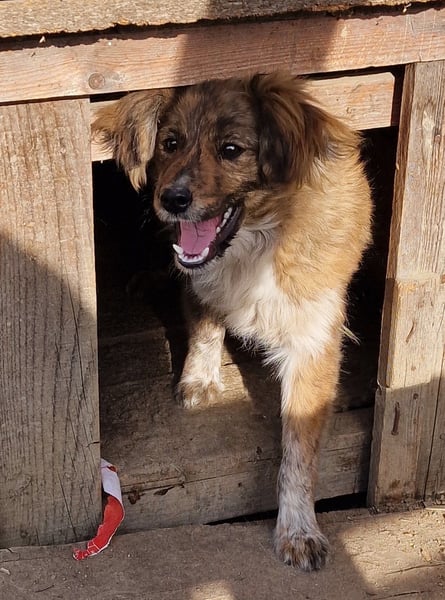 Peanut, Mischlings-Junge, geboren ca. November 2023, hat derzeit eine Schulterhöhe von ca. 35 cm und wiegt ca. 7 kg. Wir schätzen seine Endgröße auf etwa mittelgroß.