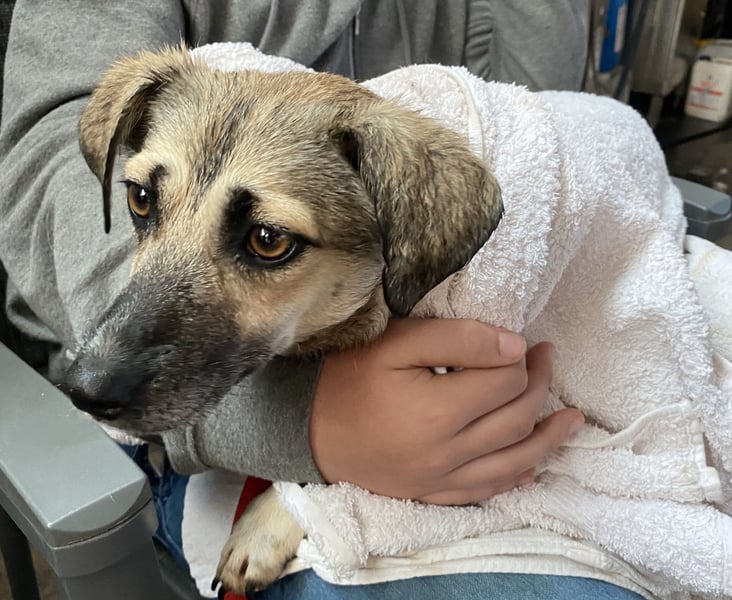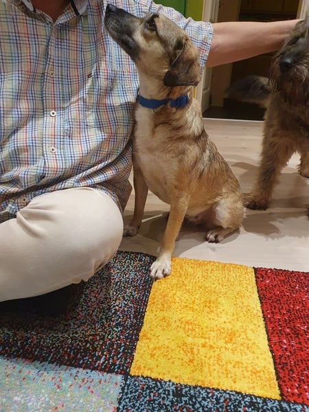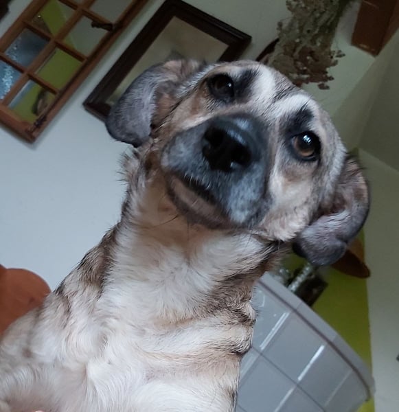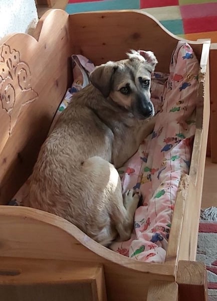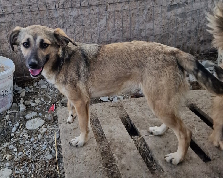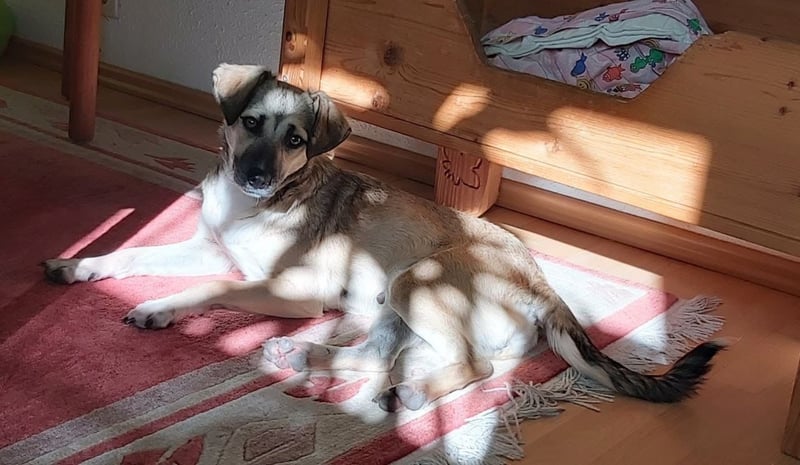 Caya Mischlings-Mädchen, geboren am 15.12.2022, hat eine Schulterhöhe von ca. 40 cm und wiegt etwa 10 kg.