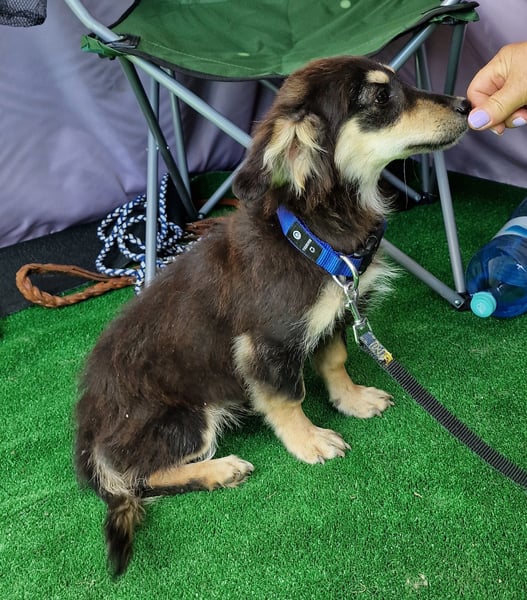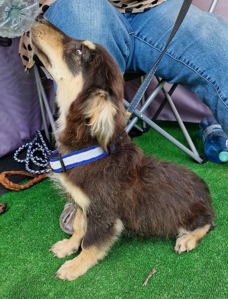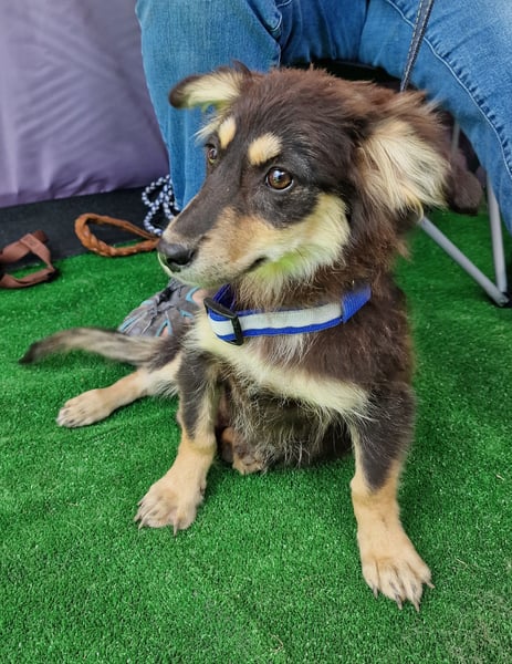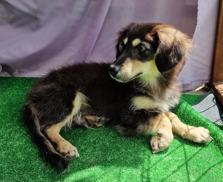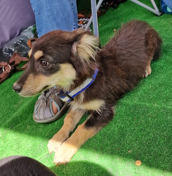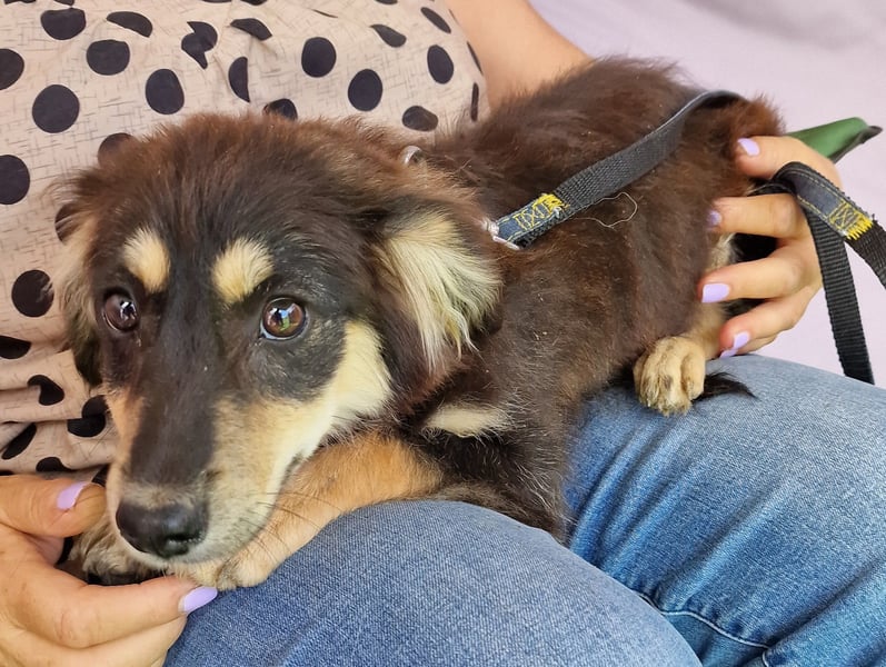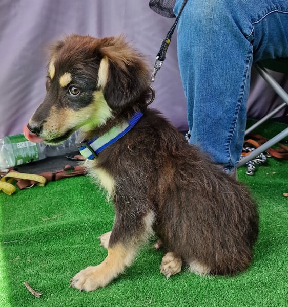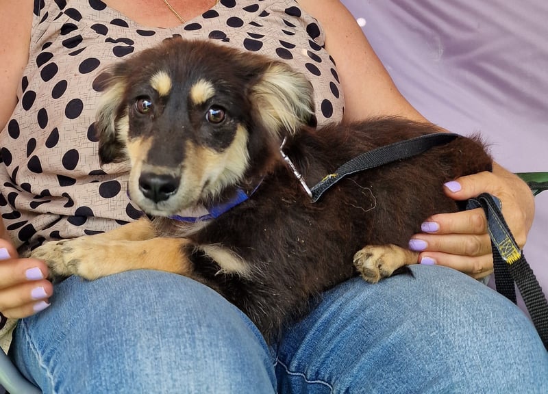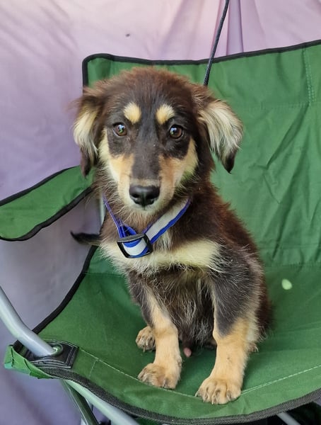 Kian, Mischlings-Junge, geboren am 23.04.2024, hat derzeit eine Schulterhöhe von ca. 30 cm und wiegt momentan etwa 5 kg. Wir denken, er wird ca mittelgroß werden.