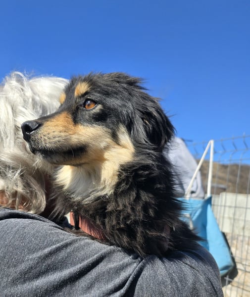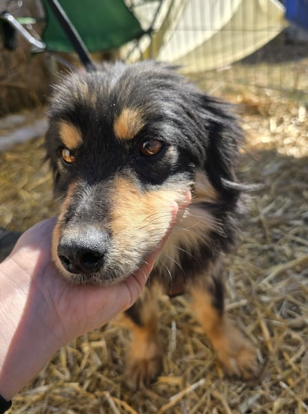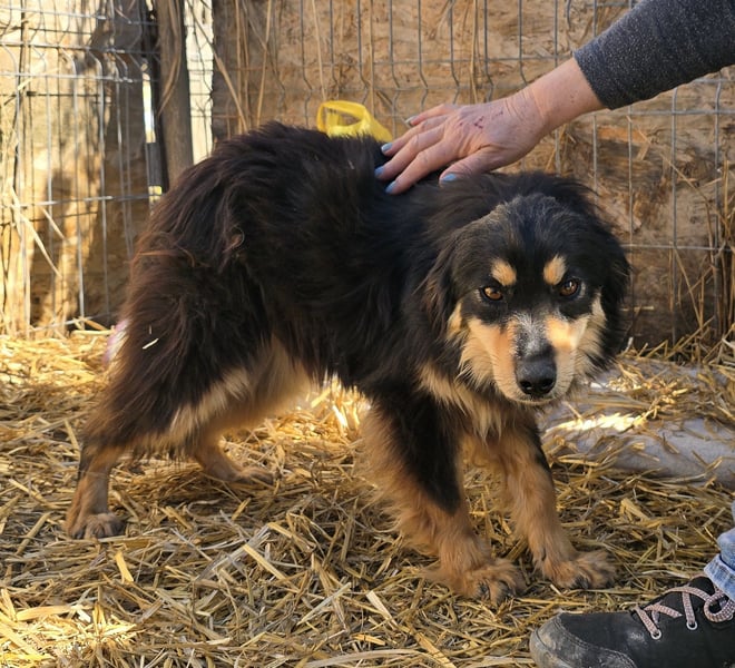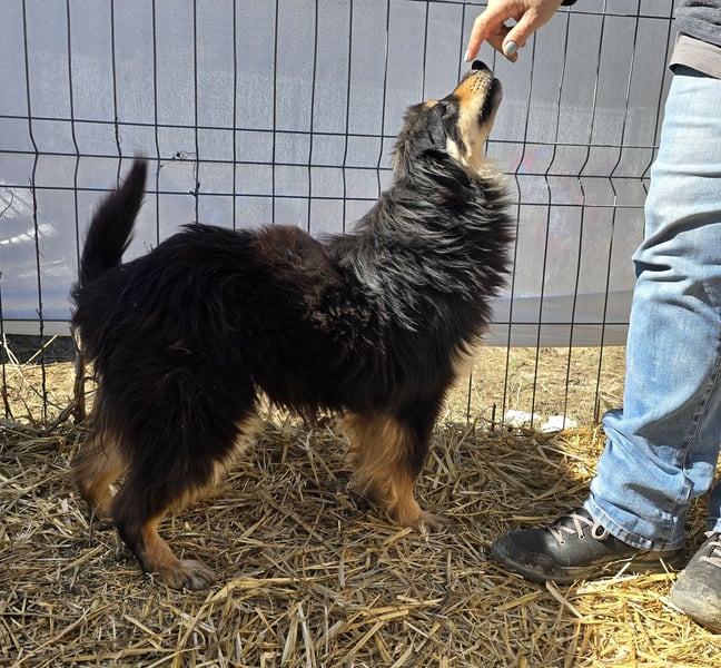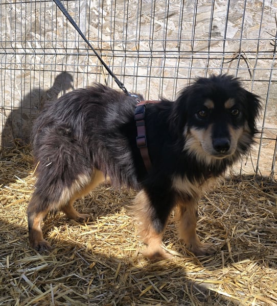 Lio, Mischlingsjunge, geboren am 08.03.2023, hat eine Schulterhöhe von ca. 40 cm und wiegt etwa 10 kg.