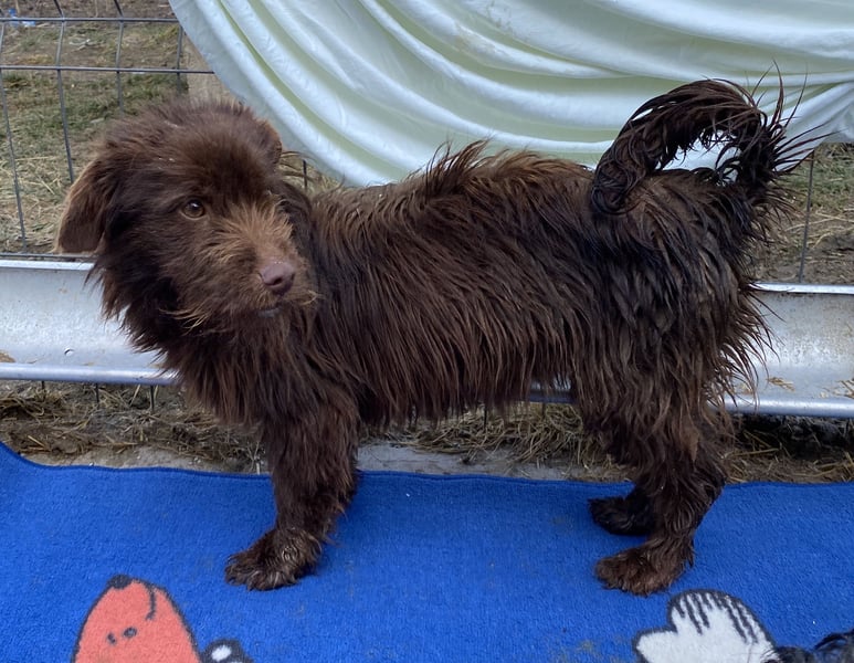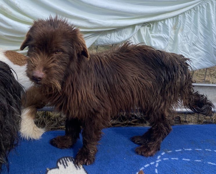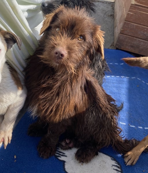 Sam, Mischlingsjunge, geboren am 01.08.2024, hat eine Schulterhöhe von ca. 30 cm und wiegt etwa 8 kg.