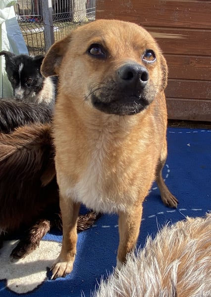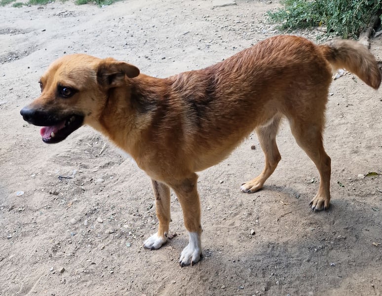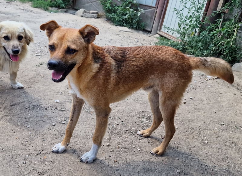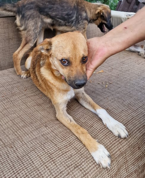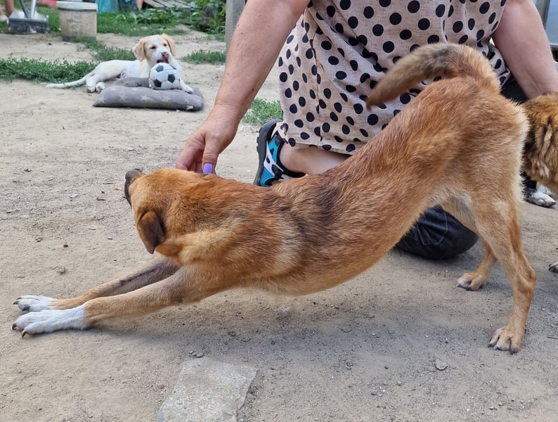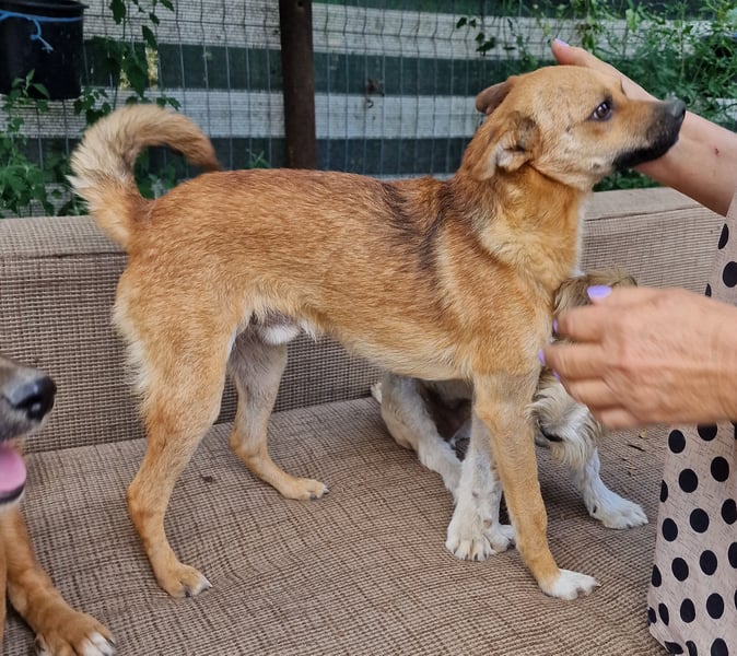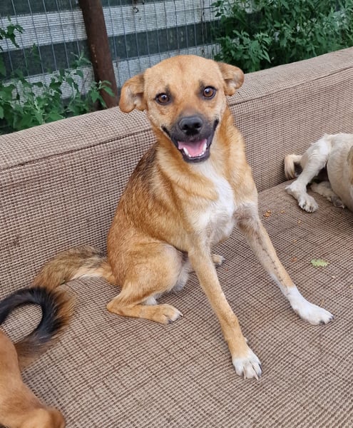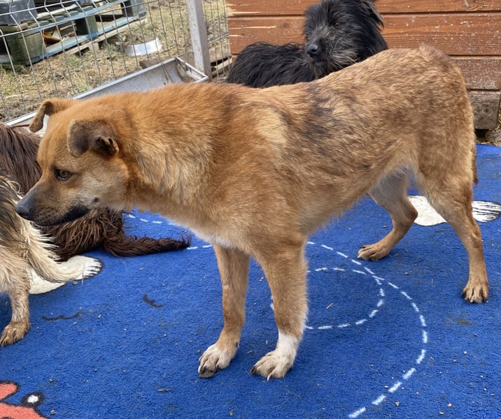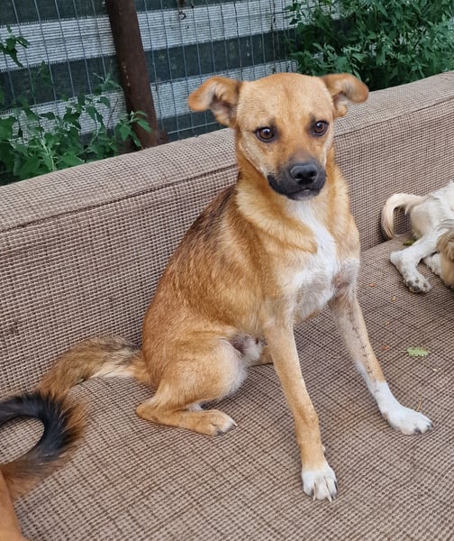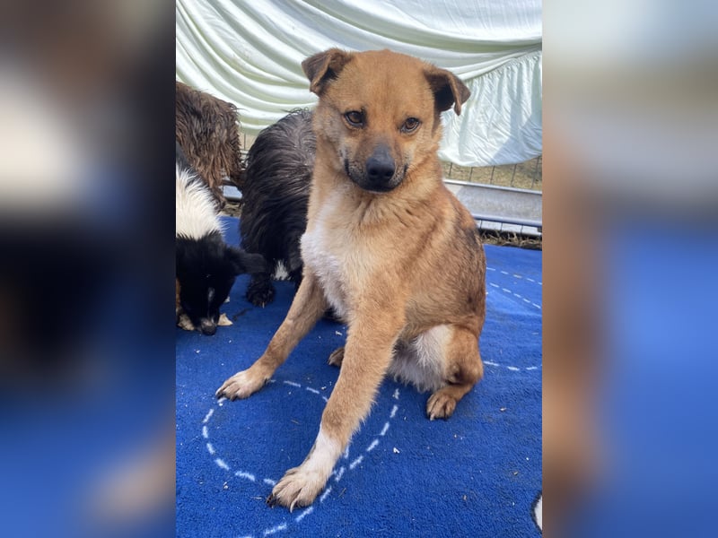 Magnus, Mischlingsjunge, geboren am 17.02.2023, hat eine Schulterhöhe von ca. 35-40 cm und wiegt etwa 10 kg.