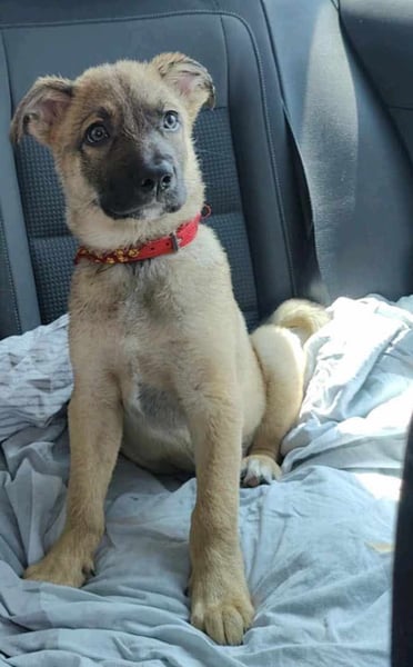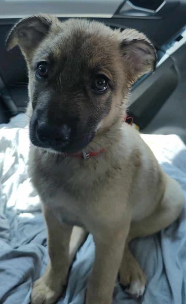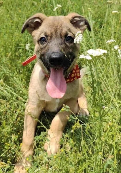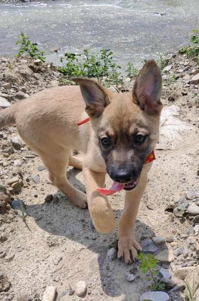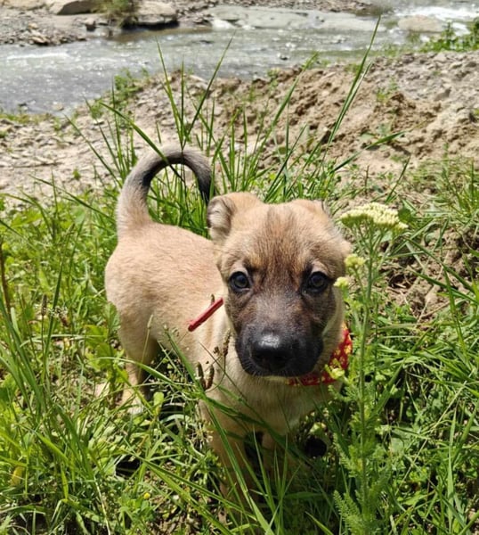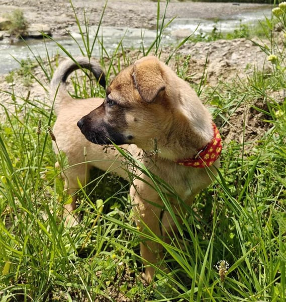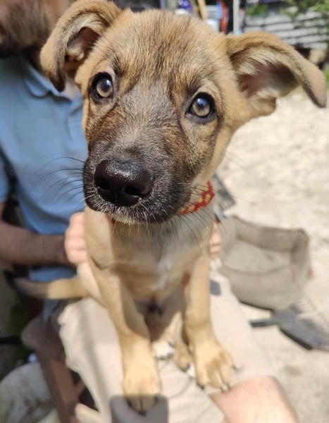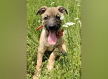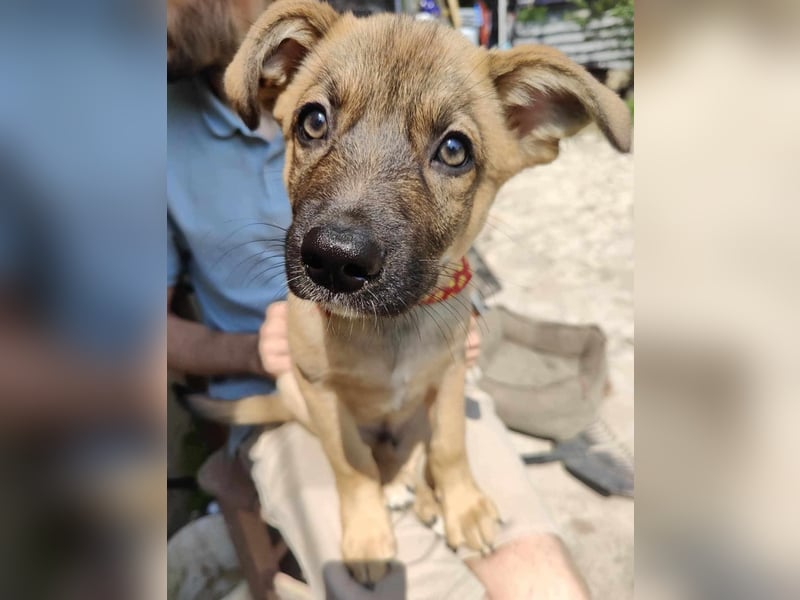 Zino, Mischlingsjunge, momentan ca 4 Monate alt, hat eine Schulterhöhe von derzeit ca. 30 cm und wiegt etwa 5 kg. Wir schätzen, er wird mittelgroß werden.
