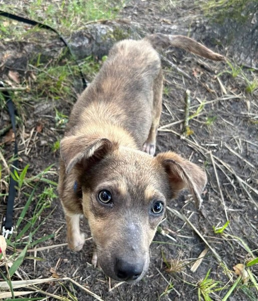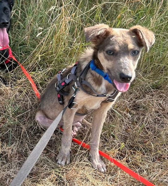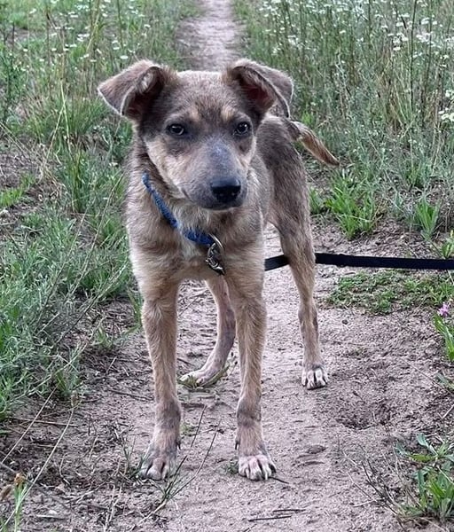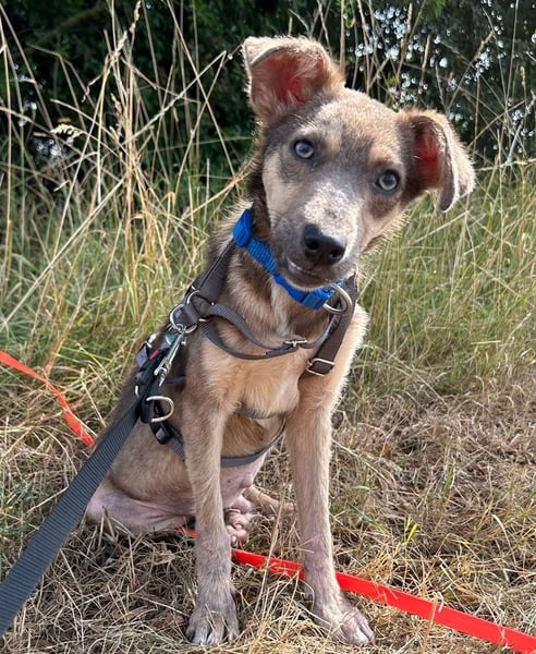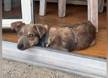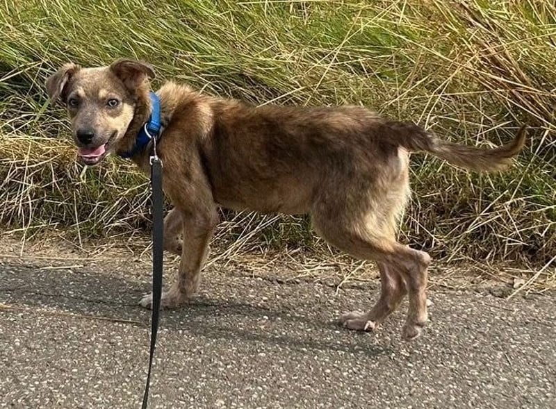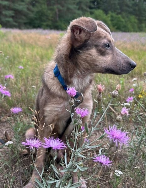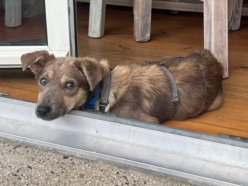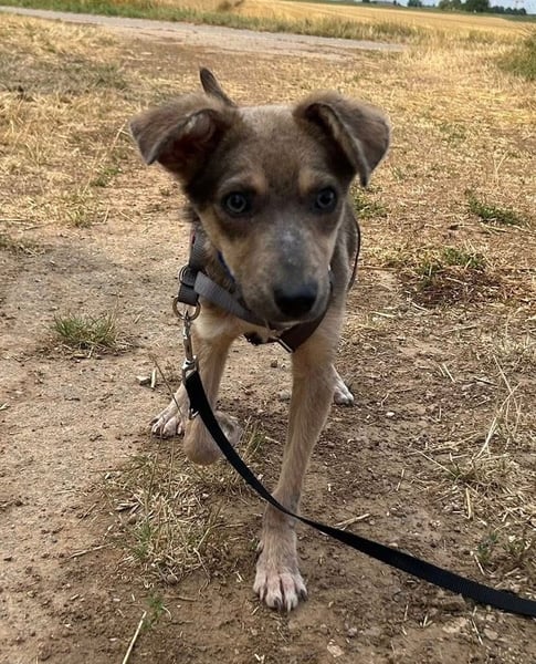 Emil, Mischlingsjunge, geboren am 01.12.2024, hat eine Schulterhöhe von ca. 35-40 cm und wiegt momentan etwa 7 kg.