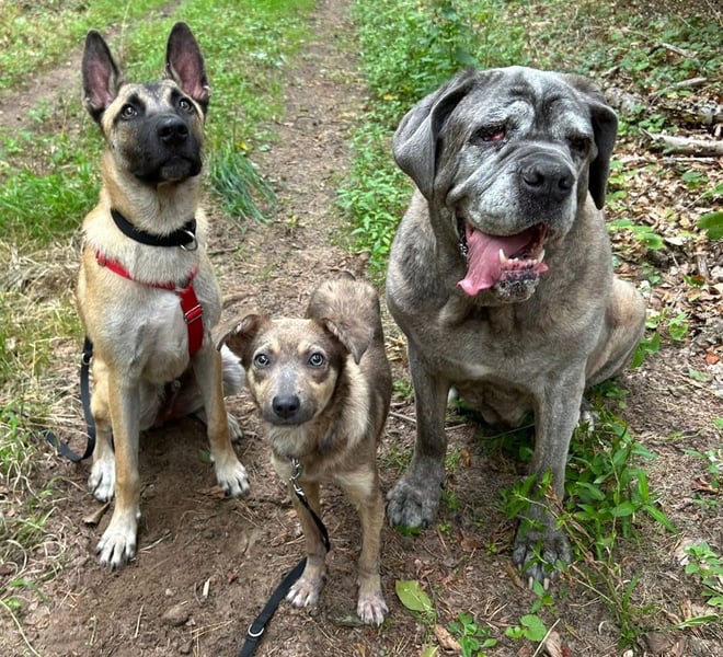 Hier kommt er super mit den anderen Hunden zurecht und er orientiert sich stark am Rudel. Auch mit dem Kater hier hat er kein Problem.