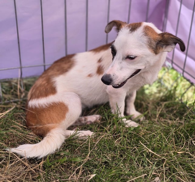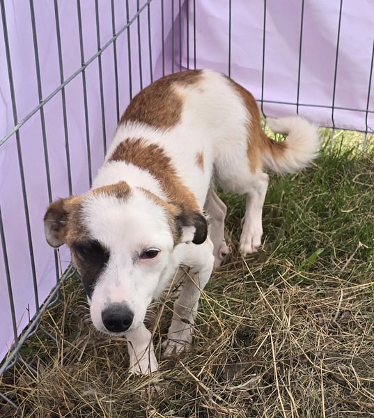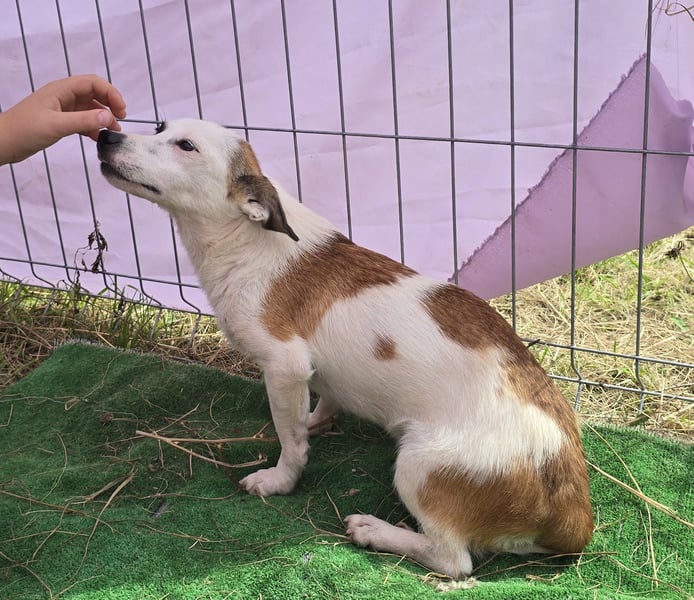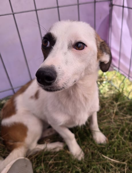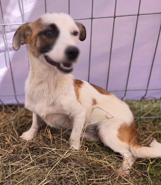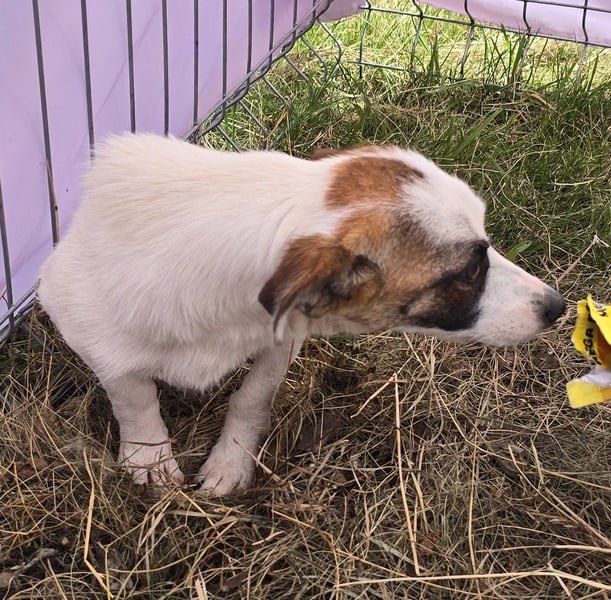 Minja, Mischlings-Mädchen, geboren am 01.09.2024, hat eine Schulterhöhe von ca. 30 cm und wiegt etwa 8 kg.