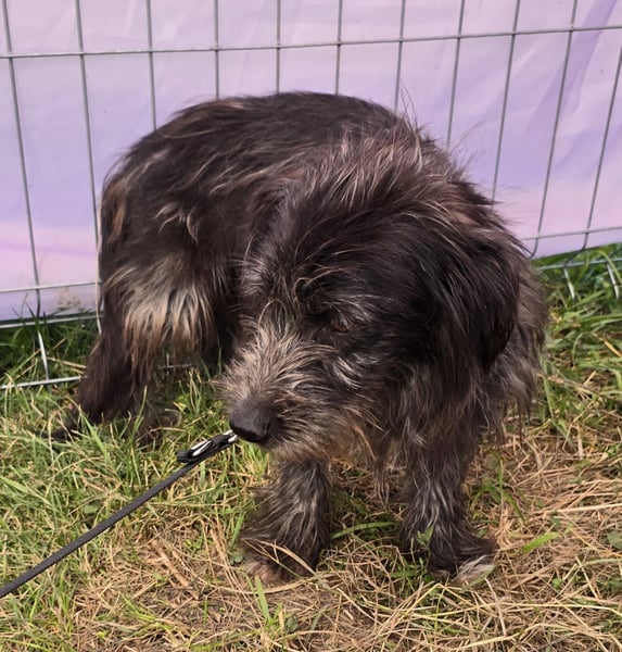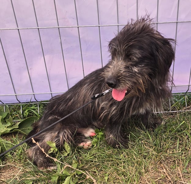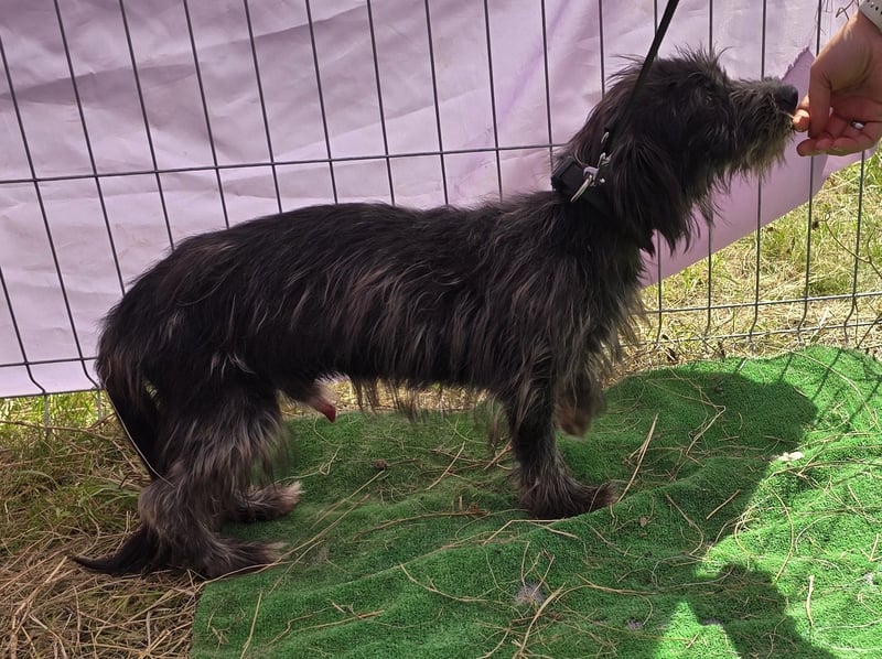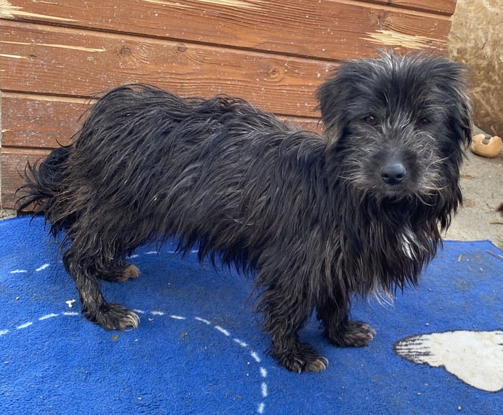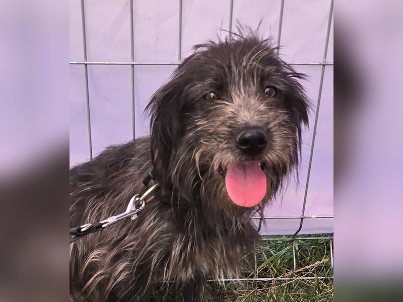 Zausel, Mischlingsjunge, geboren am 01.08.2024, hat eine Schulterhöhe von ca. 30 cm und wiegt etwa 8 kg.