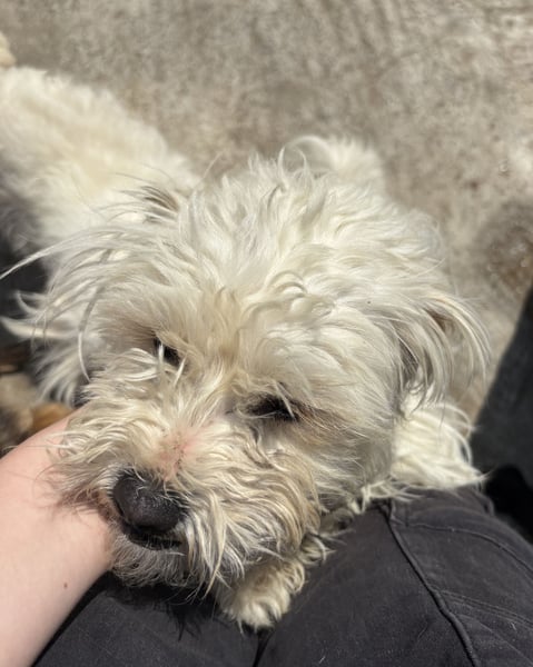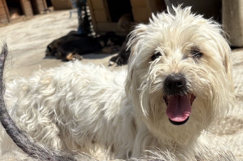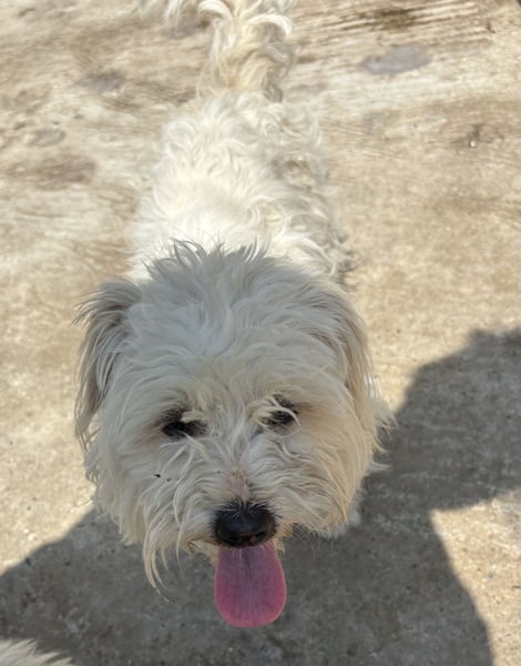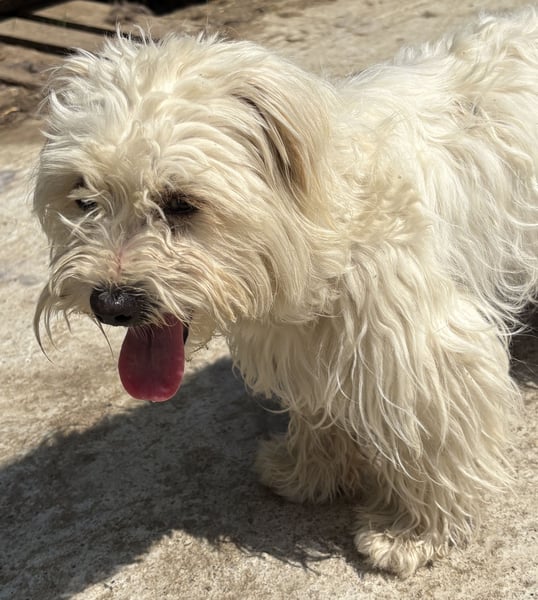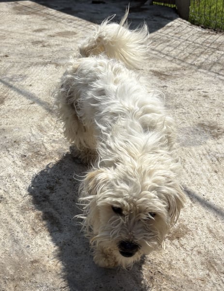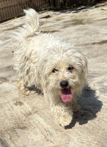 Tim, Mischlingsjunge (Malteser, Bichon Frisé?), geboren am 10.04.2024, hat eine Schulterhöhe von 31 cm und wiegt momentan 4 kg. Sein Fell ist momentan auf seiner Pflegestelle eher kurz, wird aber schnell wieder nachwachsen.