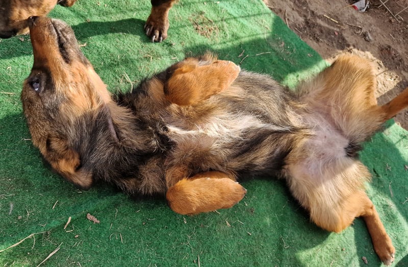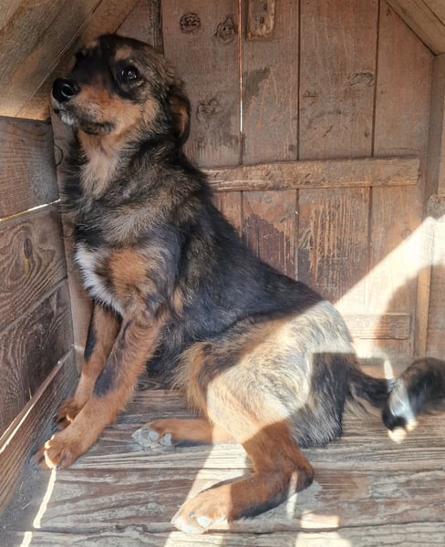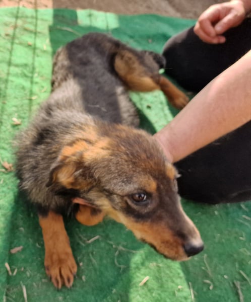 Vroni Mix Mädel, geboren am 01.07.2023, hat derzeit eine Schulterhöhe von ca. 40 cm und wiegt etwa 10kg.