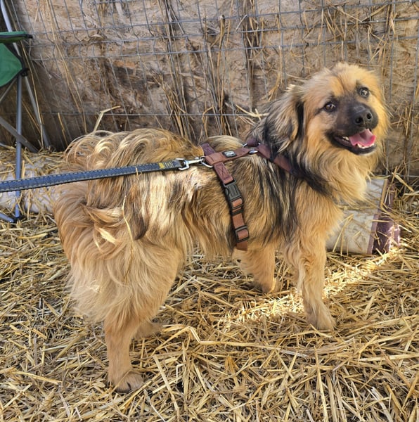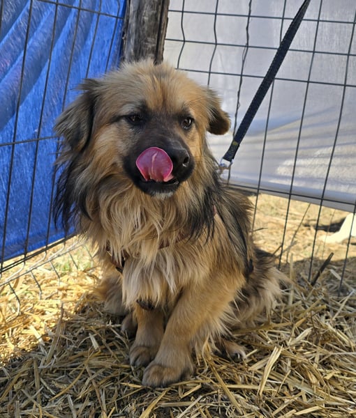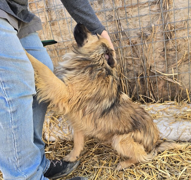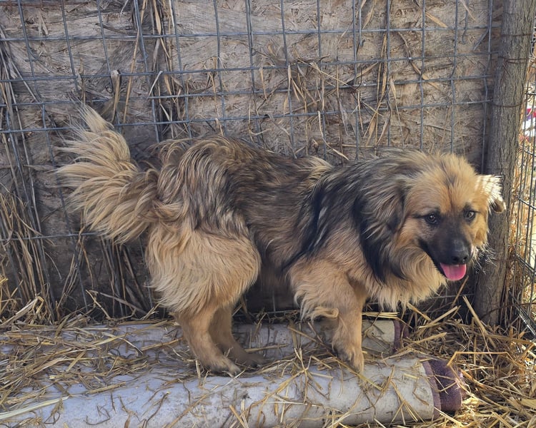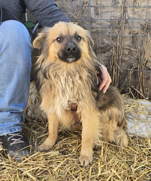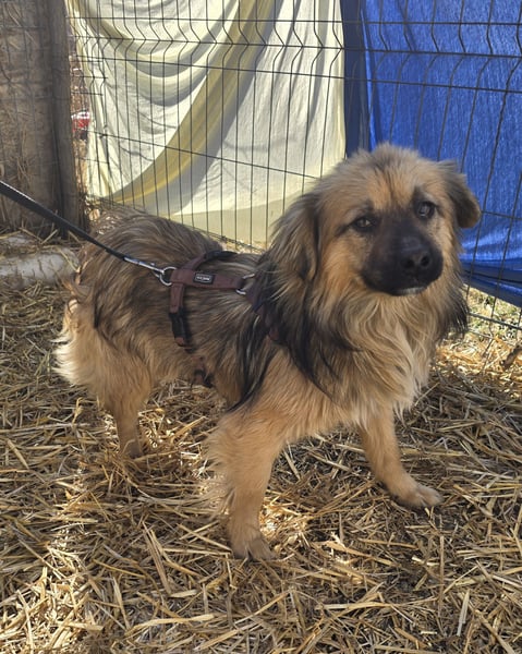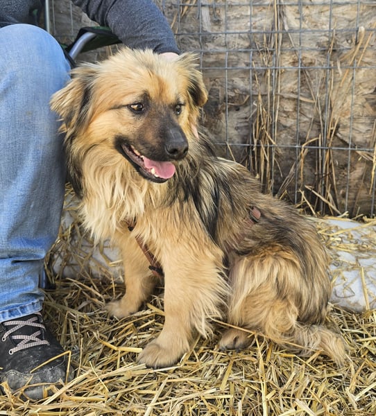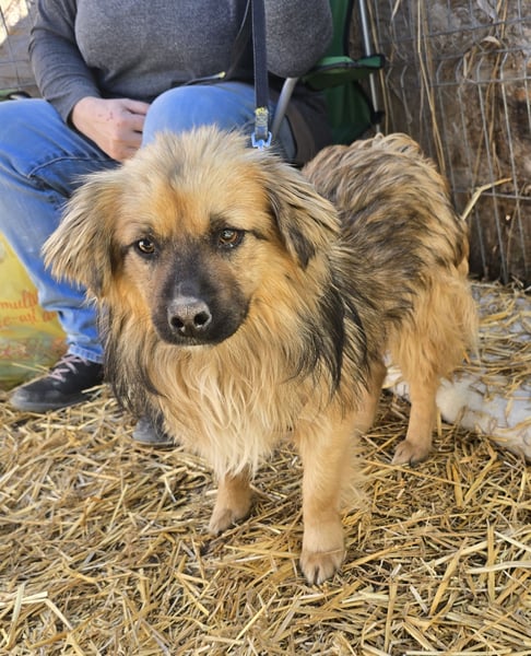 Carlo, Mischlingsjunge, geboren am 20.10.2023, hat eine Schulterhöhe von ca. 35-40 cm und wiegt etwa 10 kg.