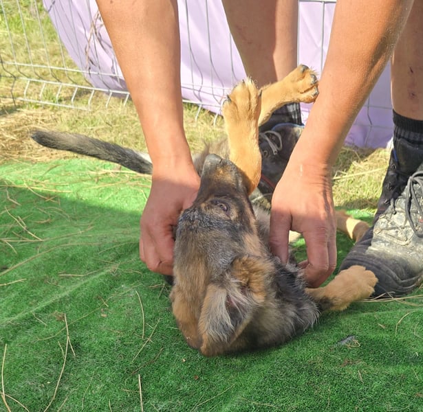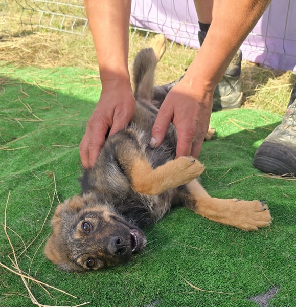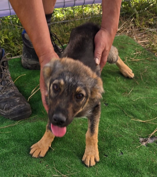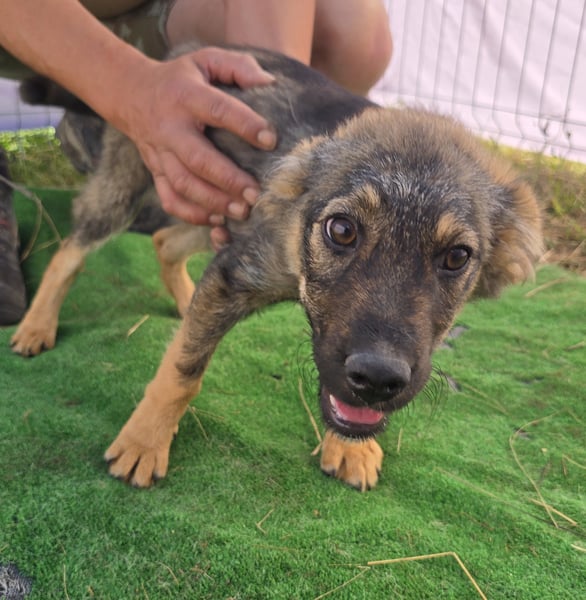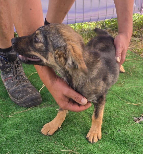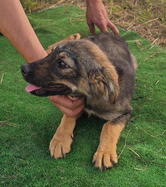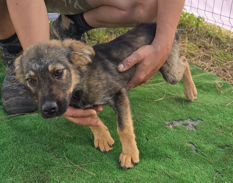 Nuri, Mischlingsmädchen, geboren am 28.07.2025, hat eine Schulterhöhe von derzeit ca. 35 cm und wiegt etwa 7 kg. Wir schätzen, sie wird mindestens mittelgroß werden.