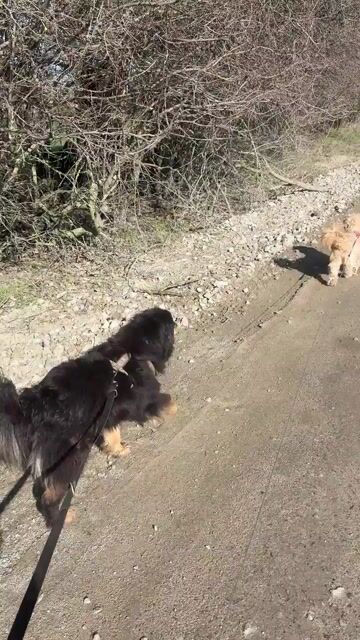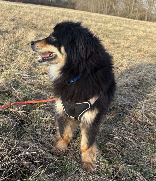 Beim Spazieren gehen läuft er super an der Leine mit. Plötzliche oder laute Geräusche verunsichern ihn noch, aber er folgt einem trotzdem gut an der Leine. Er ist hier auch schon stubenrein.