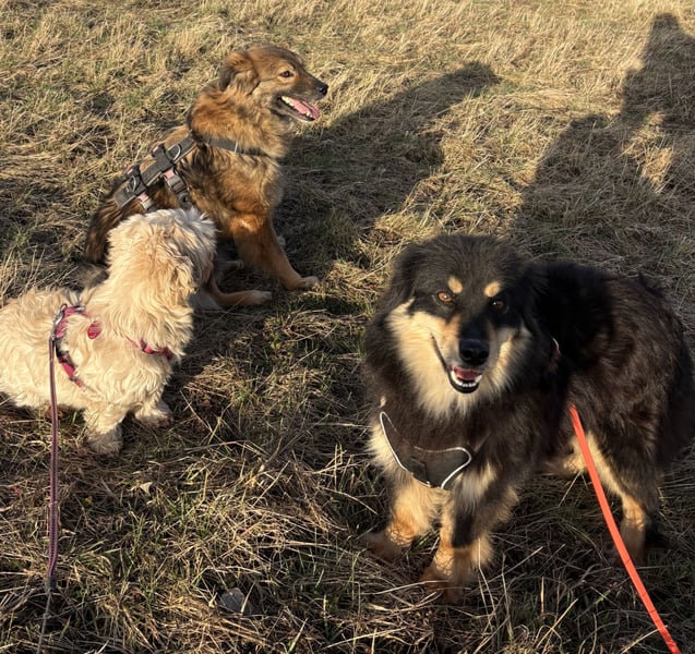 Mit anderen Hunden zeigt er sich sehr sozial und verträglich.