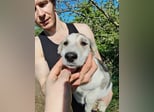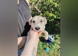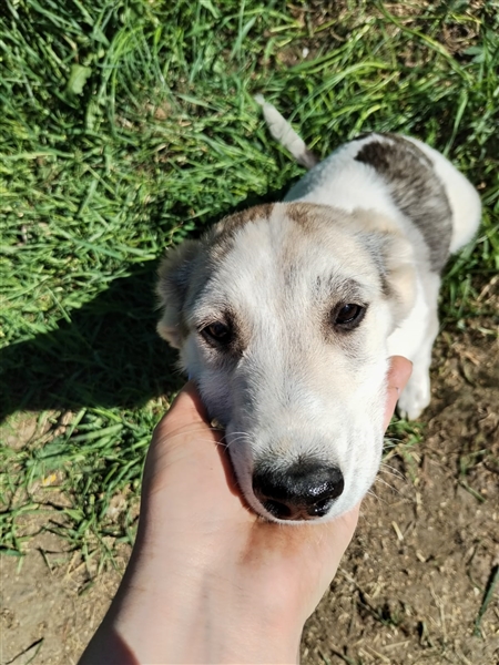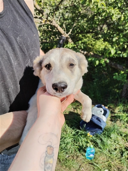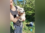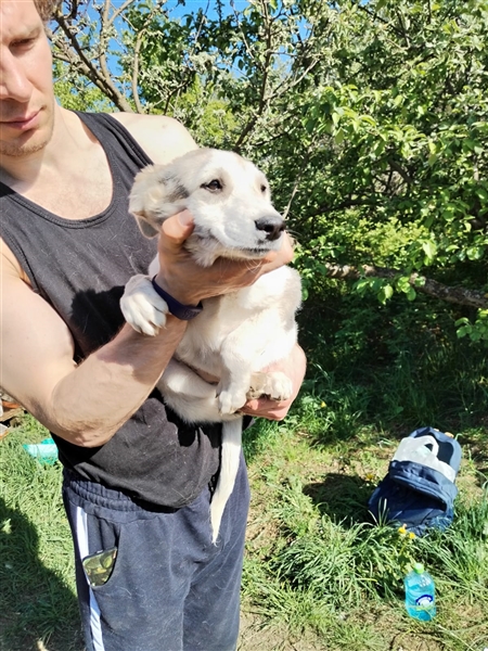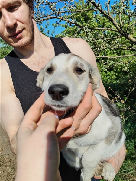Die schnuckelige kleine Motte Rina ist wie ihre Geschwister leider noch etwas schüchtern. Nach kurzer Zeit nähert sie sich auch fremden Menschen und beginnt neugierig zu beäugen, wer da wohl gekommen ist und ob derjenige nicht was Leckeres in der Tasche hat – hochheben fand sie allerdings schon noch etwas bedenklich. Sie klammerte sich vorsichtshalber mit ihren kleinen Welpenpfötchen schnell an den Arm des Mitarbeiters – nicht, dass er sie noch fallen lässt.