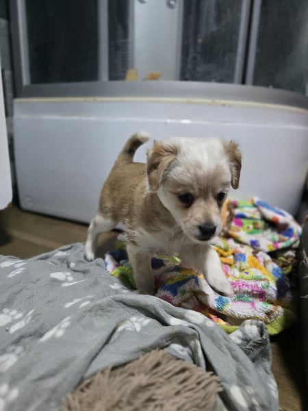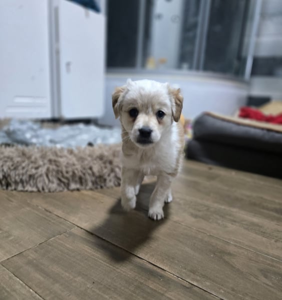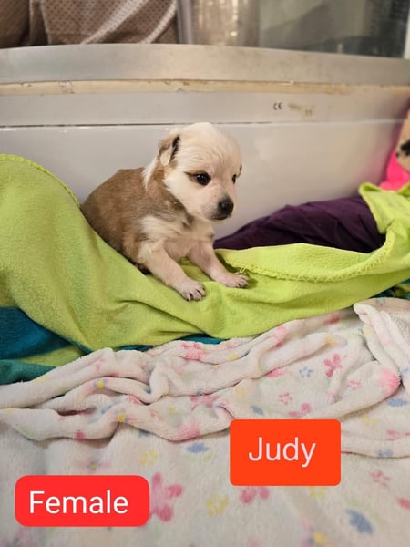 Judy , 5-monatige zuckersüßes, weiß-beiges Hundemädchen, sucht ihre Familie