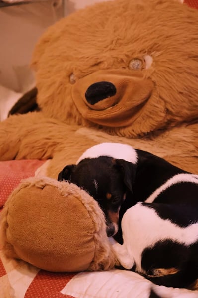 Pamina und ihre Welpen Pesto, Pumba, Paco und Pepsi wurden im Januar 2026 im Tierheim Therapy Dogs and Cats aufgenommen. Ihr Besitzer ist verstorben und Nachbar:innen haben die kleine Familie gefüttert. Da sie sich aber nicht langfristig um sie kümmern können, wurden die Hunde zu Flavia ins Tierheim gebracht.