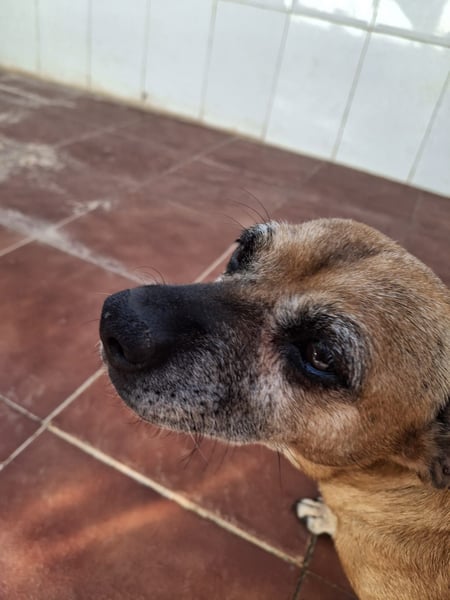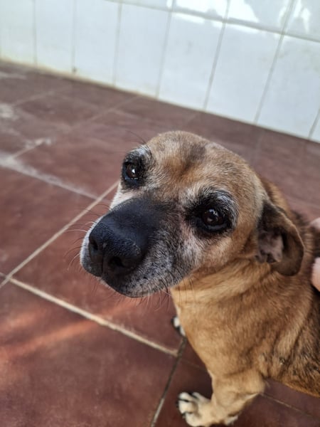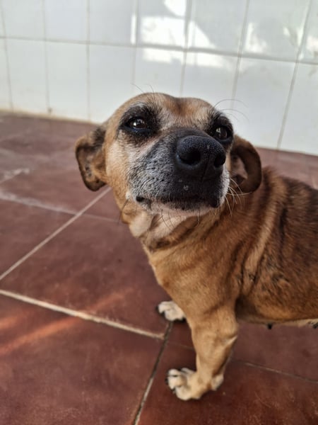 Gitana hat einen schweren Start ins Leben gehabt: Sie und eine weitere kleine Hündin lebten angebunden, vernachlässigt und voller Parasiten. Man fand sie in schlechten Bedingungen — dennoch hat Gitana nicht verbittert, sondern bleibt ein zärtliches Geschöpf, das Menschen vertraut und Nähe sucht. Seit ihrer Rettung lebt sie nun im Refugio und lernt Schritt für Schritt, wie schön das Leben sein kann.