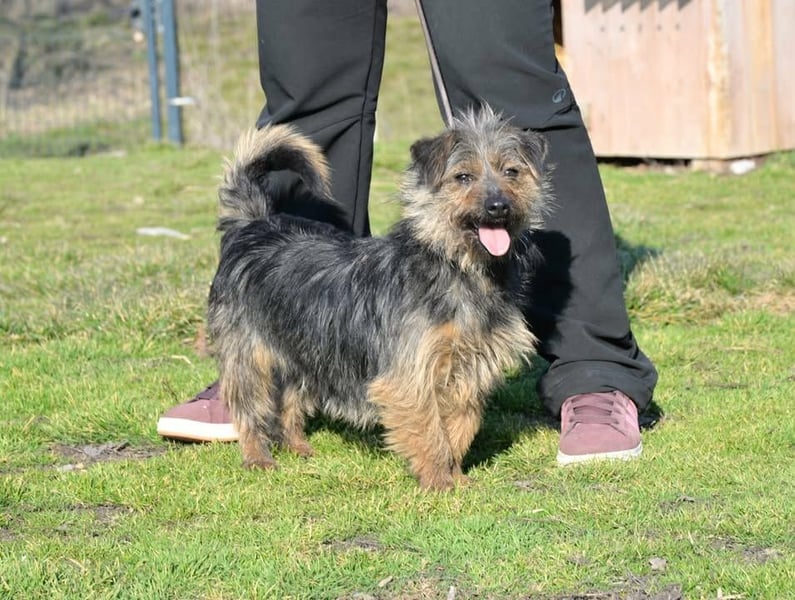 Die einjährige Hündin, die die Terrier in ihrer Ahnenlinie schon rein optisch nicht verleugnen kann, ist erst seit kurzem im Tierheim. Sie wurde auf der Straße gesichert, nachdem sie wochenlang herumgeirrt war. Diese Erfahrung hat ihr wohl sehr zugesetzt, denn bei ihrer Ankunft im Tierheim war sie sehr eingeschüchtert. Doch schon nach ein Tagen schien Hella verstanden zu haben, dass sie nun in Sicherheit ist - und taute blitzschnell auf.