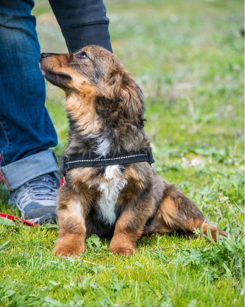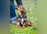 Typisch Welpe kennt er noch nicht viel, bringt aber jede Menge Lebensfreude und Lernfreude mit – und sucht Menschen, die ihm geduldig die Welt zeigen.