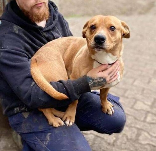 Der arme, herzige WINSTON wurde von seinen ehemaligen Besitzern in der Nähe eines Waldes eiskalt an einen Baum gebunden. Der kleine Kerl hatte die Leine durchgebissen und lief im engen Umkreis um den Baum herum. Er dachte sicher, seine Leute holen ihn irgendwann noch dort ab - leider vergebens. Bea wurde auf ihn aufmerksam, zunächst kamen sie nicht nahe an ihn heran, da er viel zu scheu und verschreckt war. Aber sie gaben nicht auf und fütterten ihn einige Tage an, bis er sich zu guter Letzt mit Hilfe eines Käfigs einfangen ließ. Nun lebt er im Shelter und ist erst einmal gut versorgt.
