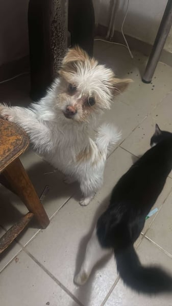 Ich wohne gerade in einem coolen Hunde- und Katzenrudel, da wird geschnüffelt, gespielt und ab und zu auch mal gebellt. Mit Katzen komm ich übrigens super klar, solange sie mich nicht für ein Spielzeug halten. Bin ja kaum größer als eine Samtpfoten