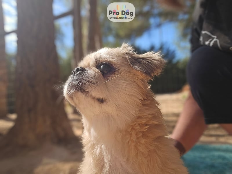 Besonderheiten: Fienchen ist blind, hat jedoch ein sehr gutes Gehör und eine gute Nase und kommt mit ihrer Blindheit ohne Probleme zurecht