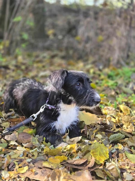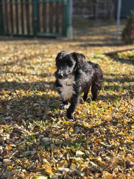 Bogyó ist erst etwa 7 Monate jung und gerade einmal 24 cm klein – vielleicht steckt ein bisschen Rauhaardackel in ihr. Sie wurde als Welpe von einer Tierschutzorganisation gefunden, doch leider bekam sie damals keine tierärztliche Hilfe, obwohl ihre Kopfverletzung schon sichtbar war.