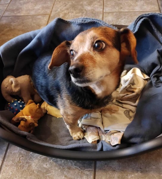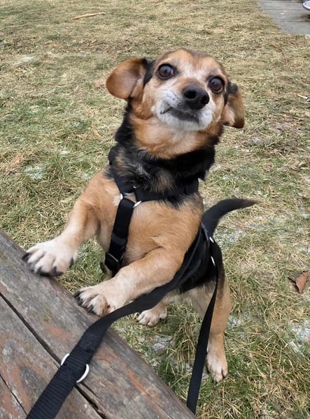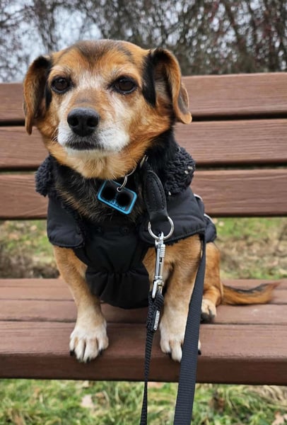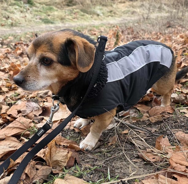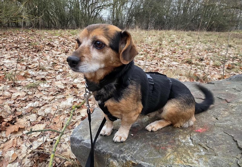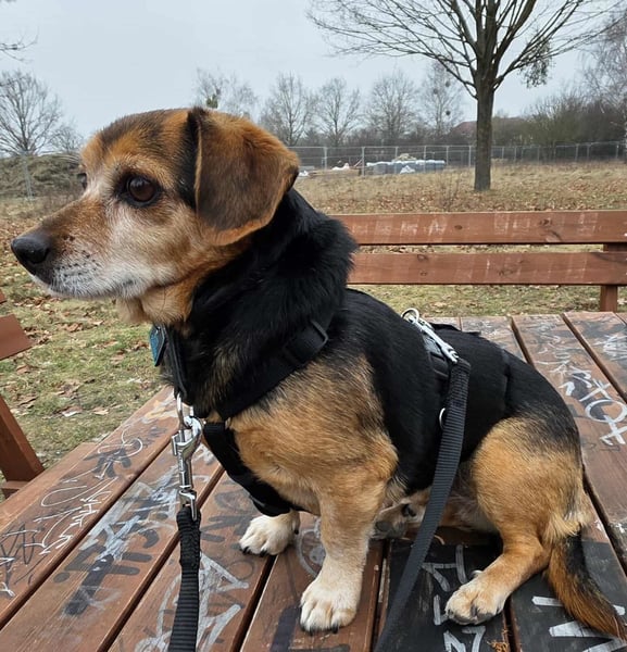 Moritz ist auf seinen kurzen Beinen richtig flott unterwegs und braucht erlebnisreiche, länger Spaziergänge.