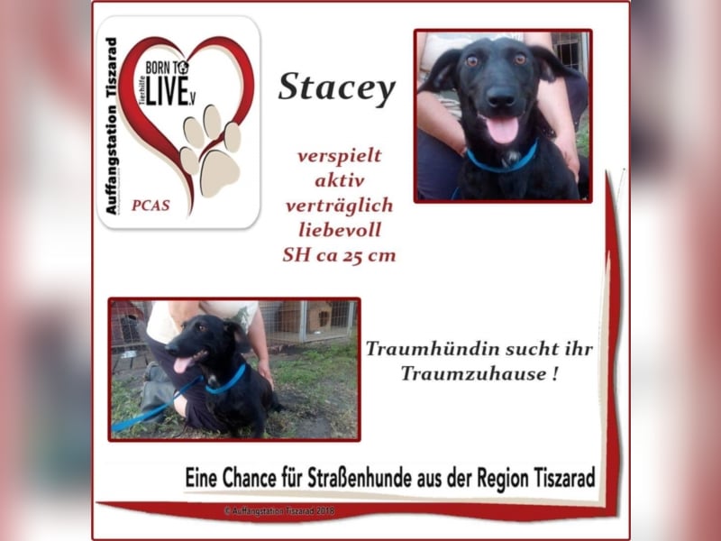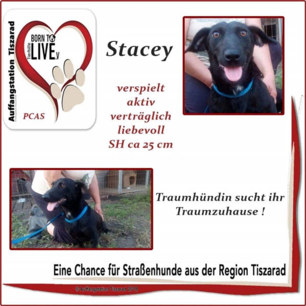 Traumhündin Stacey wurde auf den Straßen Ostungarns herumirrend gefunden und auf unserer Auffangstation Tiszarad untergebracht .Stacey liebt alle Menschen und ist auch verträglich , dazu verspielt und aktiv, der ideale Familienhund schlechthin <3