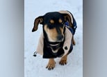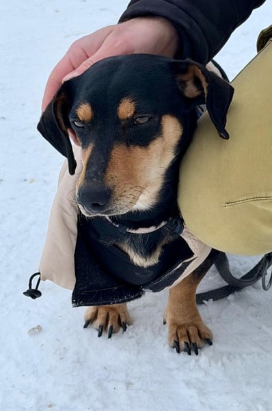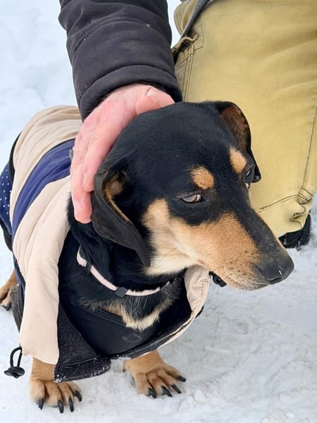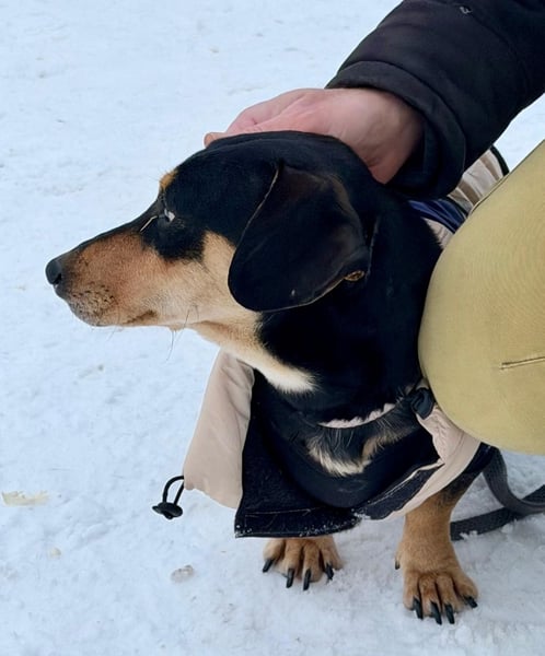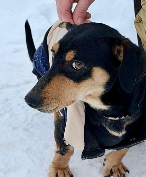 Die erst einjährige Hündin war wochenlang auf den Straßen Miskolcs unterwegs, bis eine ehrenamtliche Gassigängerin des Tierheims sie Anfang Dezember einfangen konnte. Warum dies nicht schon früher gelang, konnte sich im Tierheim niemand erklären - dort war Csingiling nämlich sofort total freundlich zu allen. Und auch beim Fotoshooting der Januarfahrt konnte die kleine Dackelmaus nicht genug von den Streicheleinheiten bekommen und "klebte" förmlich an Micha und Mark.