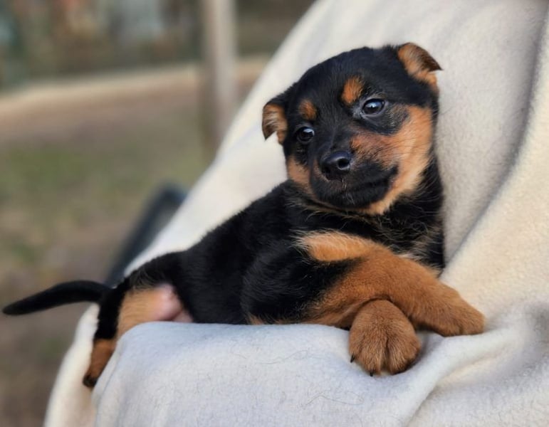 F3 ist der Bruder von F2 und F1. Die drei Geschwister kamen über befreundete Tierschützer zu uns. Die kleinen hatten keinen schönen Start ins Leben, da sie in einer Kiste unter einer Terrasse gehgalten wurden. Da dieses Leben nun endlich vorbei ist, suchen die Jungs nun ihr eigenes Zuhause. F3 ist welpentypisch verspielt und tobt gerne mit seinen Geschwistern. Er hat dennoch ein ruhiges Wesen und zieht sich auch gerne mal zurück, wenn es ihm zu heiter wird. Er ist ein sehr offener Welpe, der es genießt mit Menschen im Kontakt zu sein und auch einfach mal zu kuscheln. Wir wünschen uns ein Zuhause für ihn, in welchem er das Hundedasein ganz gelassen erkunden darf und Menschen die Lust haben, ihm das Hunde 1×1 beizubringen.