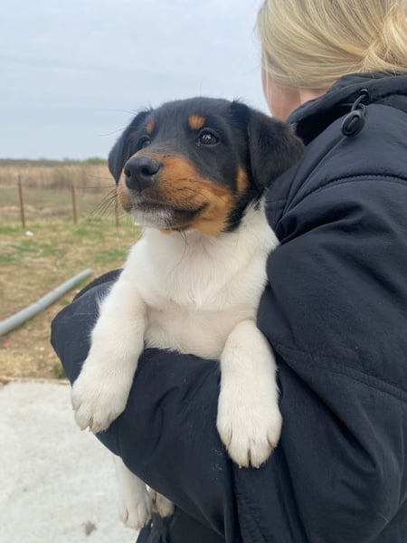 Die geschätzte Endgröße liegt bei etwa 35 cm, das Endgewicht bei circa 8-10 kg. Es könnte sein, dass ein Elterntier ein Jack-Russell-Mix war oder eine ähnlich aktive Mischung, daher sollte man bei ihnen einen lebhaften, bewegungsfreudigen Charakter erwarten. Mit der richtigen Förderung können Eliza, Elli und Emma zu wunderbaren, treuen Begleiterinnen heranwachsen.