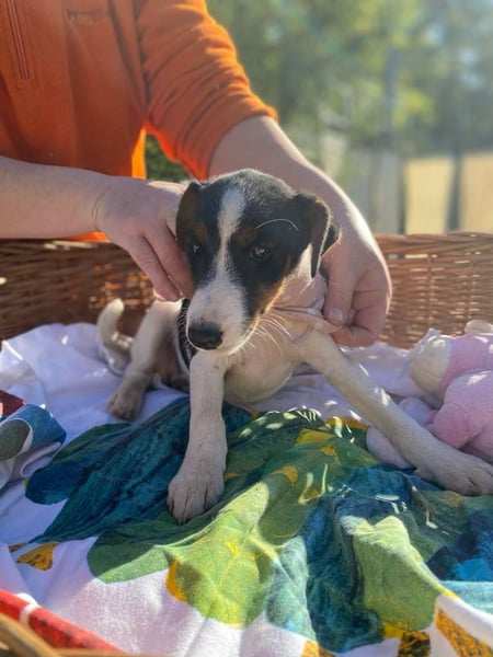 Cleo ist eine wunderschöne kleine Mischlingshündin, geboren am 28.07.2025. Leider hatte sie keinen leichten Start ins Leben – ihr Besitzer setzte sie einfach auf die Straße. Doch trotz dieses traurigen Schicksals hat Cleo ihr Vertrauen in Menschen nicht verloren.