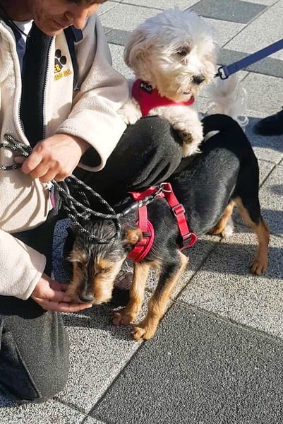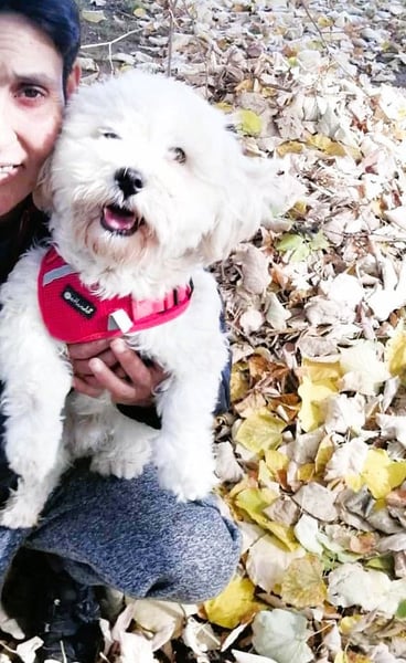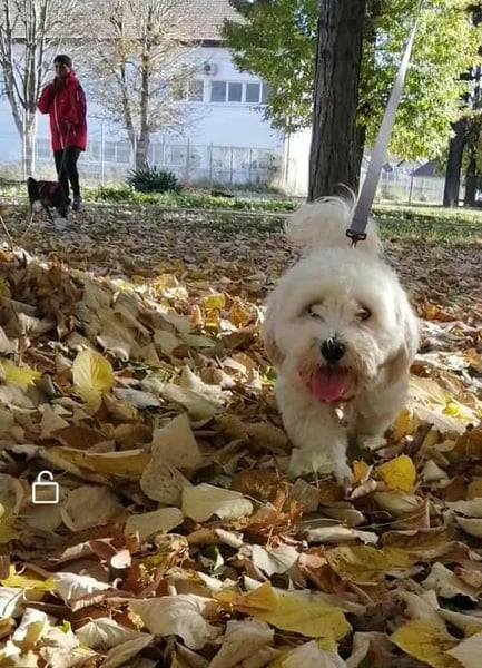 Nachdem sie es bemerkt hatte, dass ihr ein kleiner weißer Hund hinterherläuft, hat sie befreundete private Tierschützer informiert, die Athos zu sich holten, damit er erstmal in Sicherheit war.