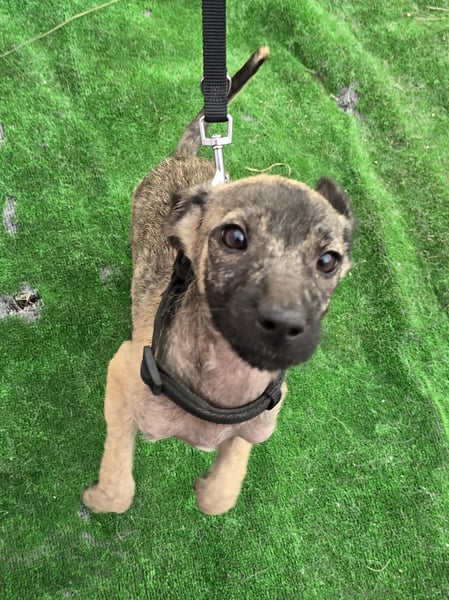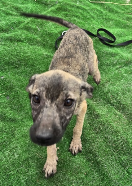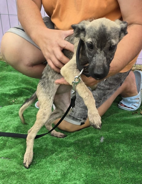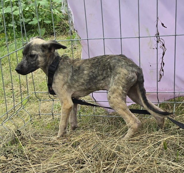 Mulan, Mischlings-Mädchen, geboren am 20.05.2025, hat derzeit eine Schulterhöhe von ca. 25 cm und wiegt momentan etwa 4 kg. Wir schätzen, sie wird klein bis maximal mittelgroß werden.