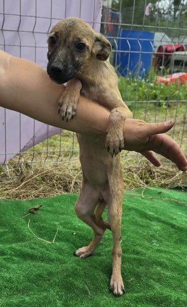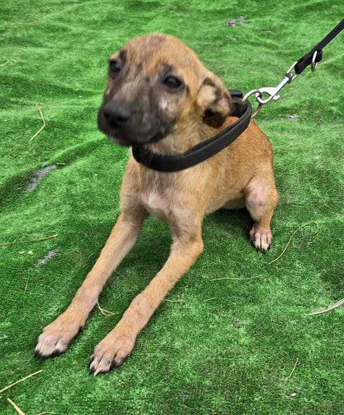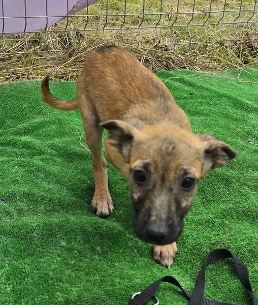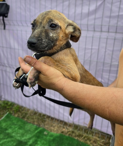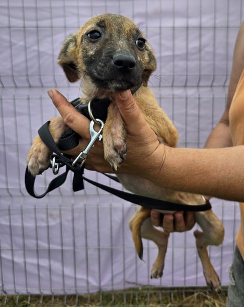 Alice, Mischlings-Mädchen, geboren am 20.05.2025, hat derzeit eine Schulterhöhe von ca. 25 cm und wiegt momentan etwa 4 kg. Wir schätzen, sie wird klein bis maximal mittelgroß werden.