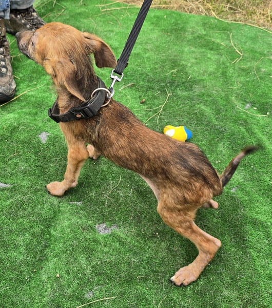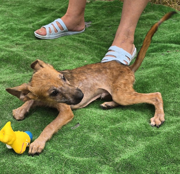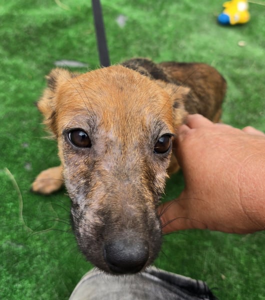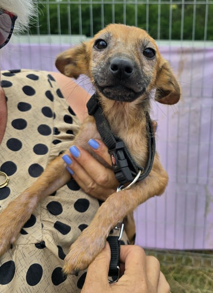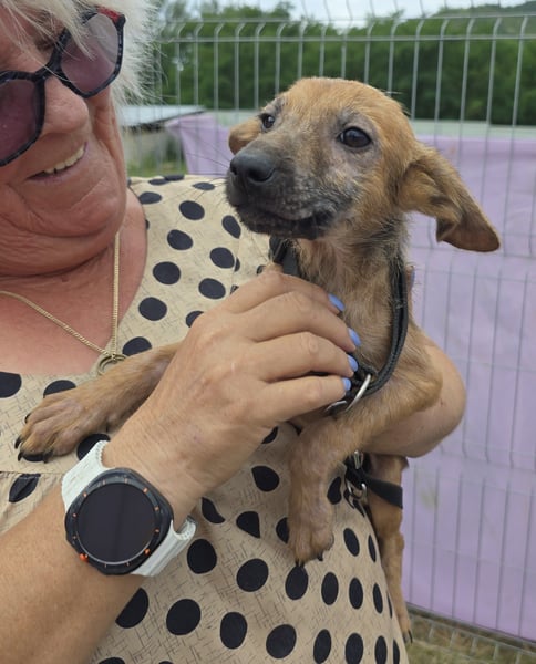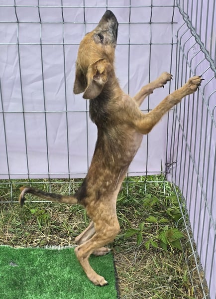 Aladdin, Mischlingsjunge, geboren am 20.05.2025, hat derzeit eine Schulterhöhe von ca. 25 cm und wiegt ca. 4kg. Wir schätzen, dass er maximal mittelgroß werden wird.