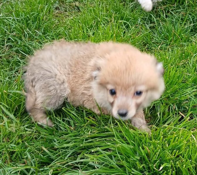 Greg, Mischlingsjunge, geboren am 23.12.2025, hat derzeit eine Schulterhöhe von ca. 20 cm und wiegt ca. 4 kg. Wir schätzen, er wird klein bleiben.