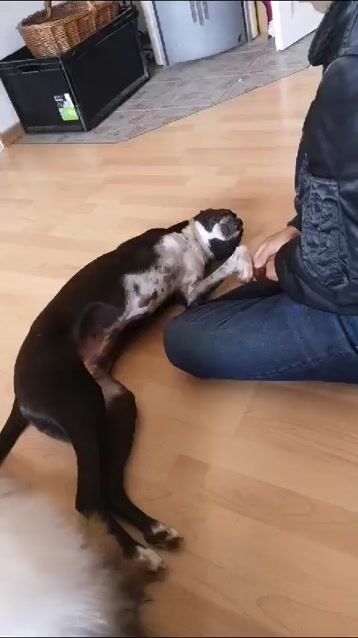 Kira ist verspielt und fordert insbesondere einen vorhandenen Rüden regelmäßig zu lustigem Spiel auf. Danach darf es aber auch gern wieder zu einem gemütlichen Kuscheln kommen.