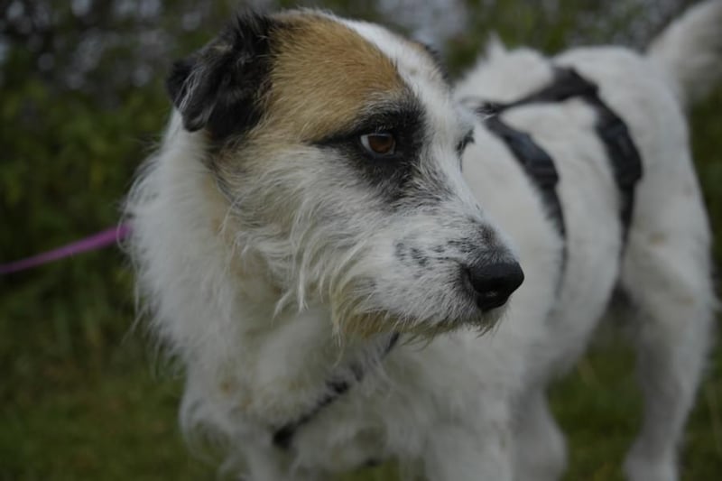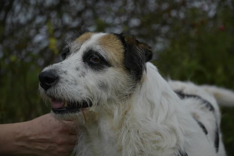ich bin Motte, eine Mischlingshündin, geboren Anno 2017, mittelgroß gewachsen und schon von kräftiger Statur. Ich habe vorwiegend weißes Strubbelfell, mit vielen kleinen schwarzen Tupfen auf Körper und Schnauze, eine schwarze Waschbärchenbrille um die Augen herum, braune Abzeichen auf der Rübe und weiter braune Pünktchen an der Rute und am Körper. Klingt kompliziert, ist es aber nicht, einfach einen Blick auf mich werfen und staunen! Ich trage wirklich kleine zuckersüße Knickohren, die mein freundliches Gesamtbild in Zusammenarbeit mit meinen wunderschönen braunen Augen nochmal auftunen. Gesundheitlich habe ich nur kleine Baustellen, die ich als altersentsprechend beschreiben würde. Ich bin etwas schwerhörig, habe leichte Arthrosen und eine Harninkontinenz, was mit Medikamenten aber gut eingestellt ist und deshalb aktuell kein Problem darstellt. Charakterlich bin ich eine richtige Zaubermaus, sehr anhänglich und verschmust, freundlich und aufgeschlossen, ruhig und ausgeglichen. Ich liebe Autofahren und mittelgroße Gassirunden, habe wirklich Witz und Charme, zaubere meinem Pflegefrauchen liebendgern ein Lächeln auf`s Gesicht. Ich verstehe mich eigentlich mit Hans und Franz, okay, Kaninchen triggern mich schon ein wenig, aber das ist absolut handlebar. Ich lebe hier auf der Pflegestelle harmonisch mit einer Katze und einem anderen Hund zusammen, eigentlich muss ich hier für mein Glück nur noch entdeckt werden!