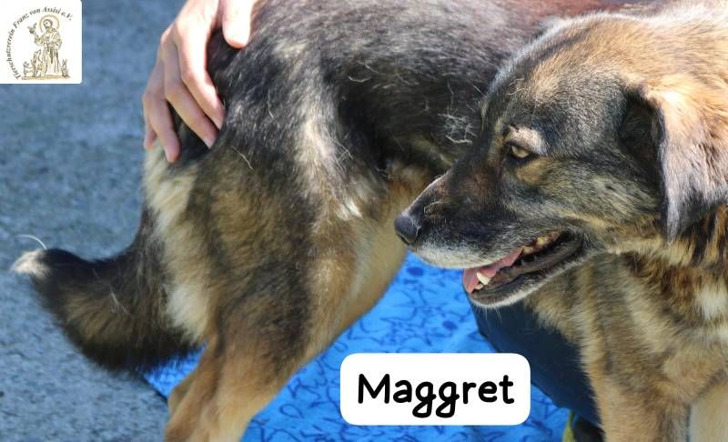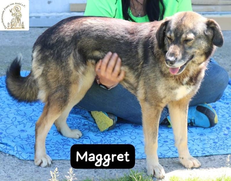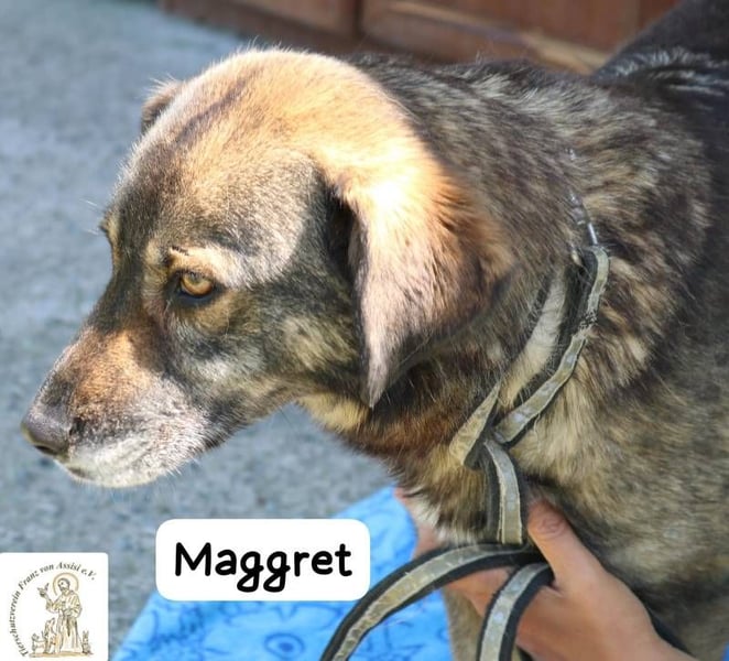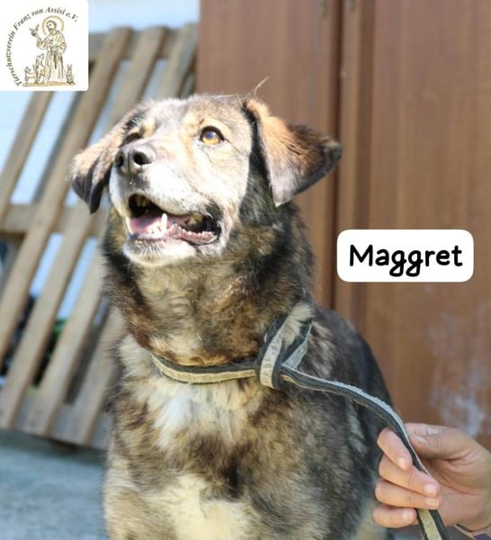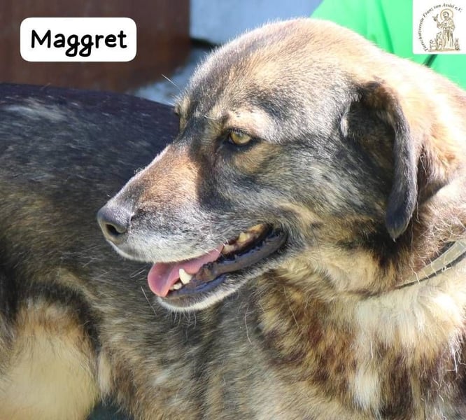 Maggret ist eine junge Hündin mittlerer Größe, die schon länger in der Pension lebt. Für eine so menschenbezogene, einfühlsame Hündin wie sie ist das Leben im Zwinger besonders schwer. Viel lieber würde sie an der Seite ihrer Menschen sein – in einem Zuhause, wo sie Nähe, Geborgenheit und Liebe spüren darf.