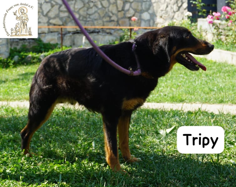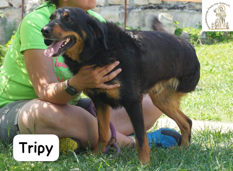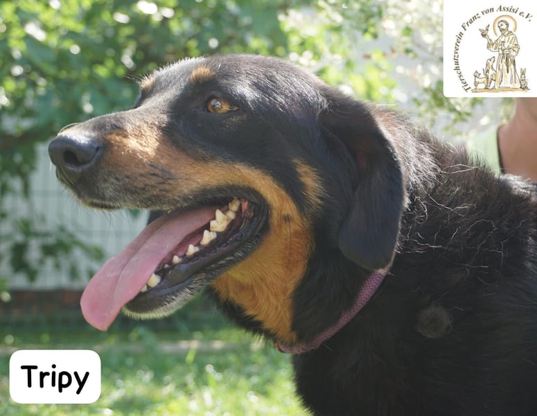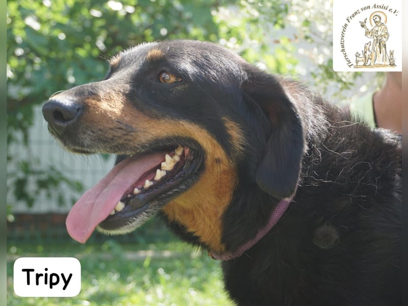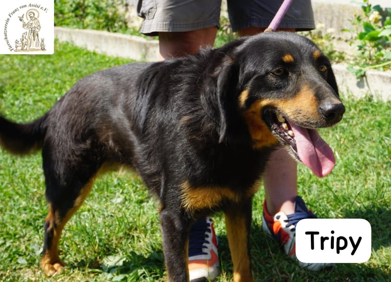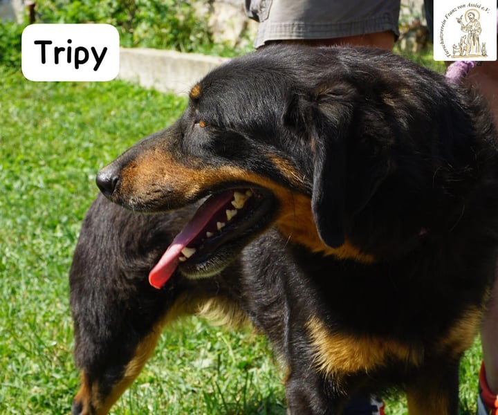 Tripy unser junger charmanter Rüde beeindruckt sofort mit seinem wunderschönen Fell in dunklen und hellbraunen Nuancen, das im Licht glänzt. Eine wahre Augenweide – und noch dazu voller Energie und Lebensfreude!