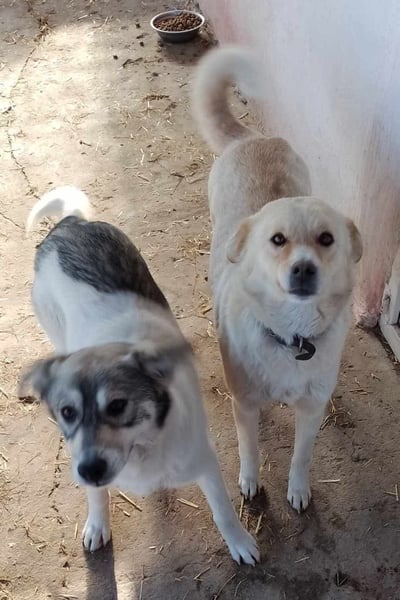 Als Tierschützerin Aura mal wieder unterwegs war, um nach umher streunenden Hunden in den Nachbardörfern zu sehen, traf sie auf zwei Hündinnen, die gemeinsam unterwegs waren.