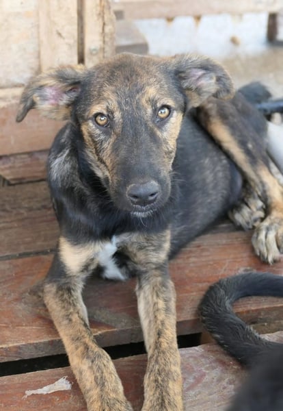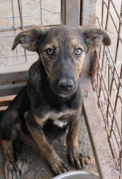 Ibiza wurde mit seiner Mama Inoa und seinen zehn Geschwistern im März 2024 gerettet. Hundefänger haben die Hundefamilie eingefangen und wollten sie ins öffentliche Tierheim bringen. Unser Team vor Ort hat dies mitbekommen und holte die Mama und ihre elf Welpen ab um diese in Sicherheit im Tierheim Ari Paws unterzubringen. Leider sind kurz darauf vier Welpen verstorben.