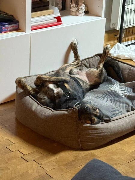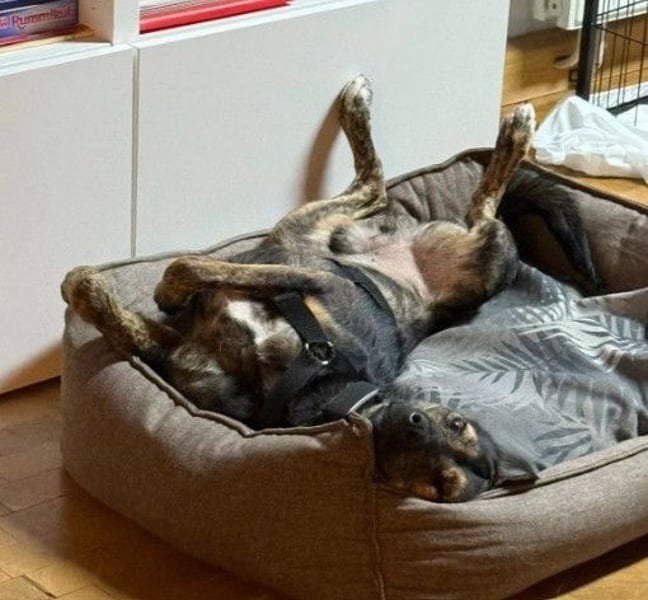 Dort zeigt er sich aufgeschlossen und menschenbezogen. Auto fahren stresst ihn noch etwas, aber daran wird schon fleißig von der Pflegestelle gearbeitet. Dort darf er mit auf die Arbeit und hat seine neue Aufgabe als Bürohund bereits toll gemeistert!